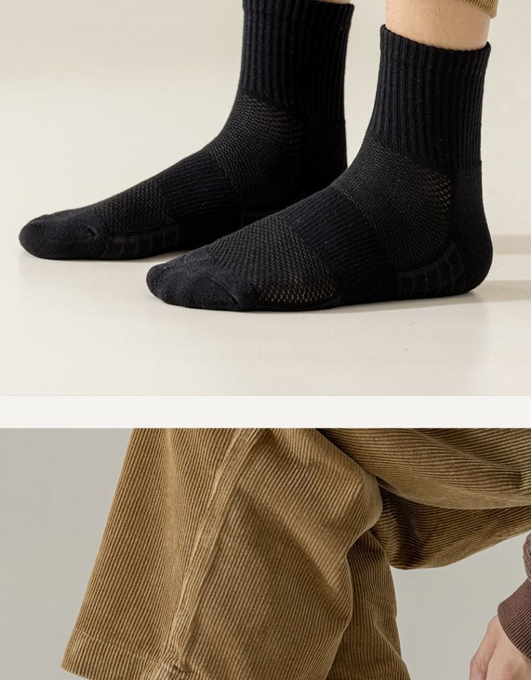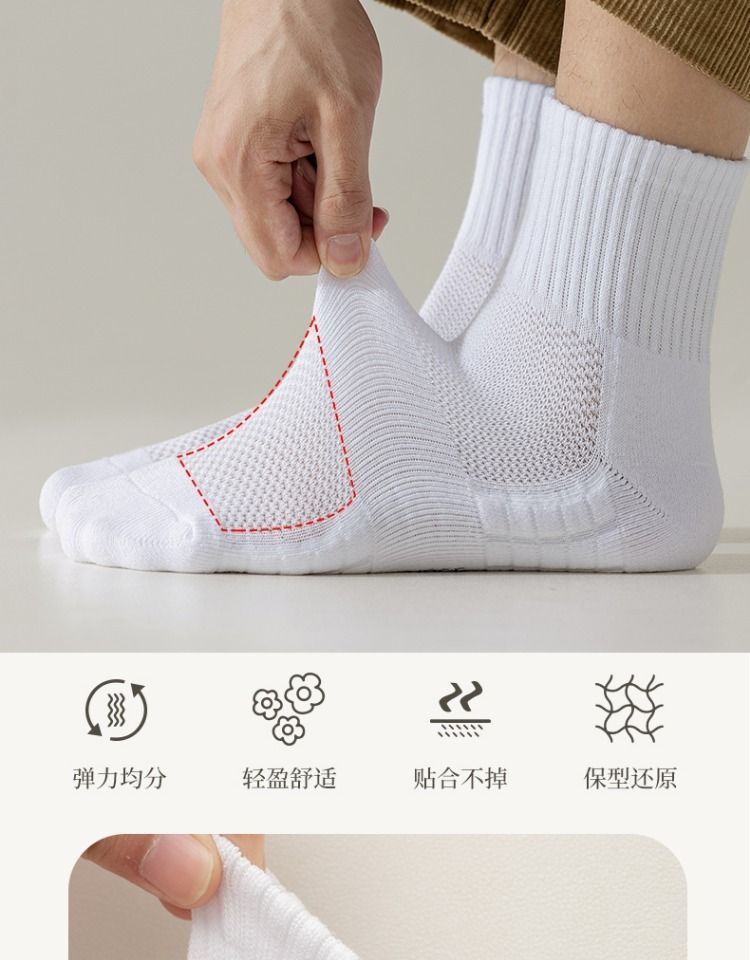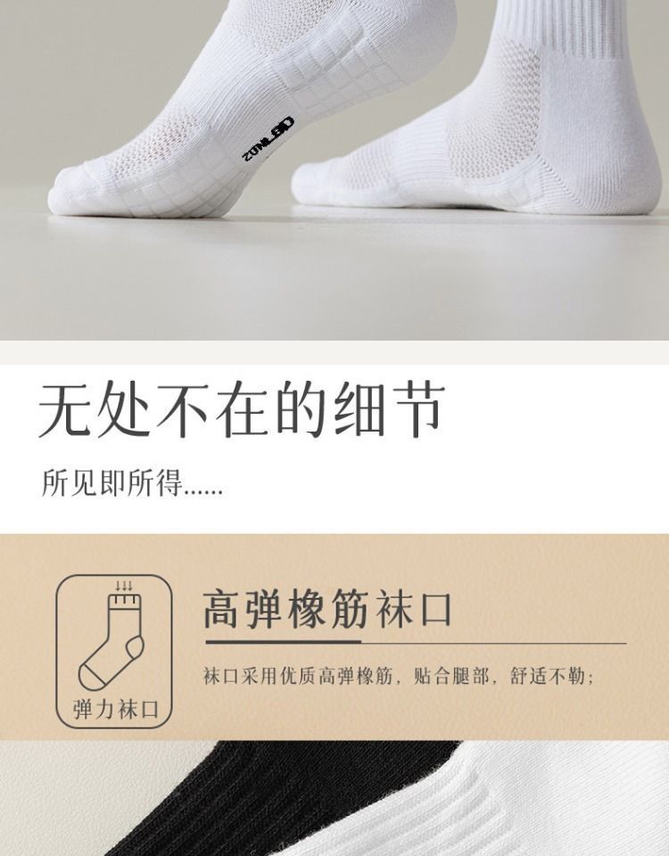 新疆綿ポリエステルタオル靴下厚い靴下男性用中筒白黒スポーツストッキング防臭通気四季靴下中
