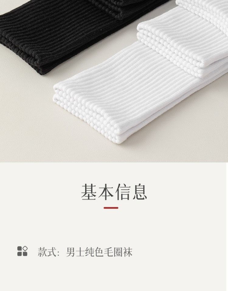 加厚保暖毛巾袜纯色中长款男女通用运动吸汗透气学生袜子黑白