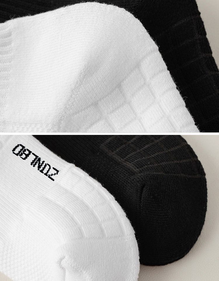 春夏の男女兼用ソックス、ミッドチューブタオル底厚手の純綿ミッドチューブスポーツソックス、黒と白の吸汗消臭バスケットボールソックス