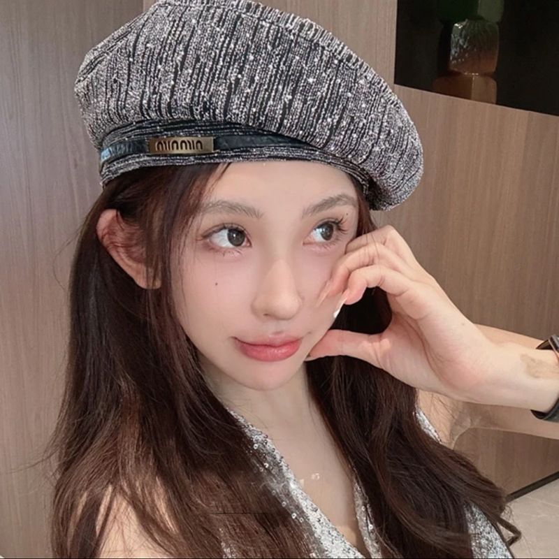 2024 新しいファッション PU ベレー帽女性の夏薄いスタイル多用途大きな頭囲顔を小さくする八角形帽子トレンディ