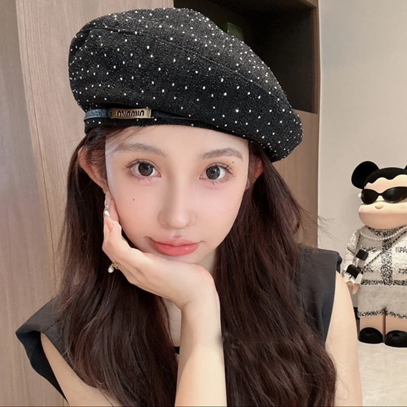 高級な顔の小さいフラッシュドリルの満天の星の大きい頭の周りのベレーの帽子の女性の秋冬のファッションの復古の百合の画家の帽子の潮流