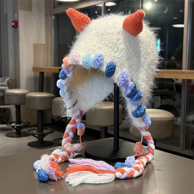 可爱小怪兽触角毛绒帽子女冬季加厚保暖雷锋帽户外骑车防寒护耳帽