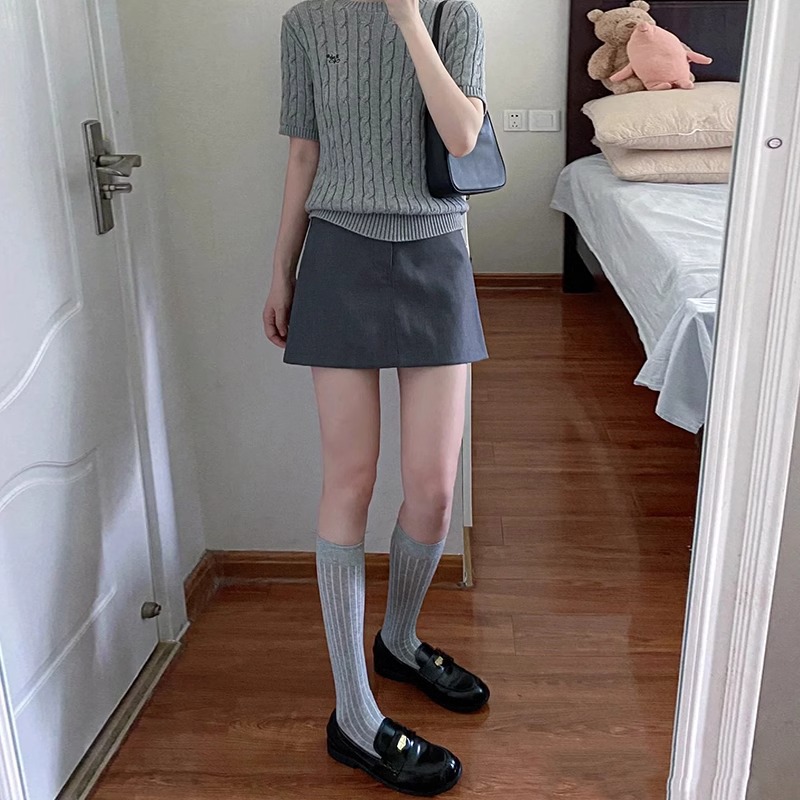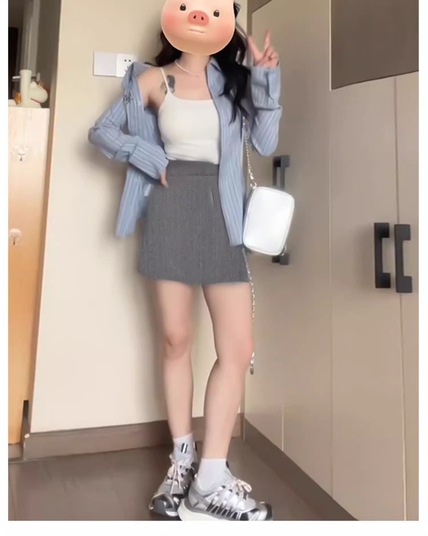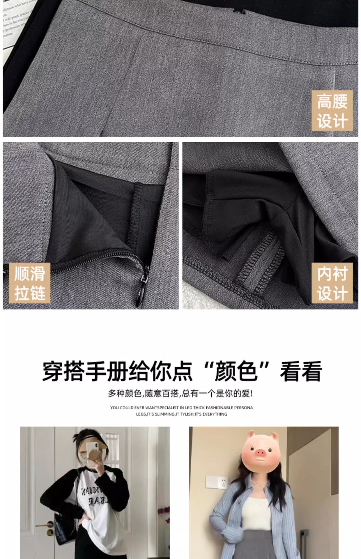 灰色のスーツのスカートの女性の夏の2025新型のハイウエストはやせています。