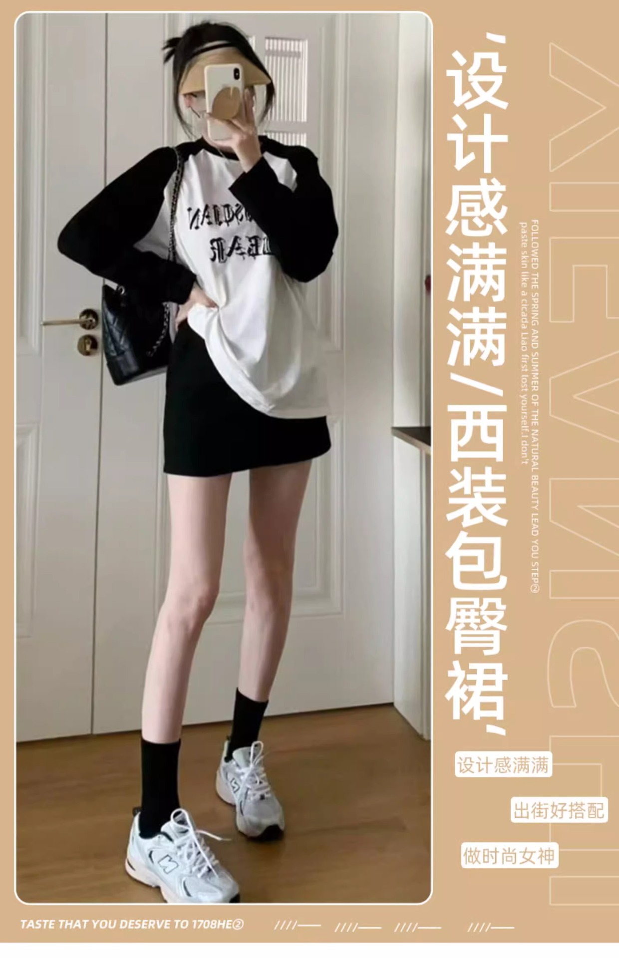 黑色西装包臀短裙女秋季新款高腰显瘦a字高级感辣妹紧身半身裙子