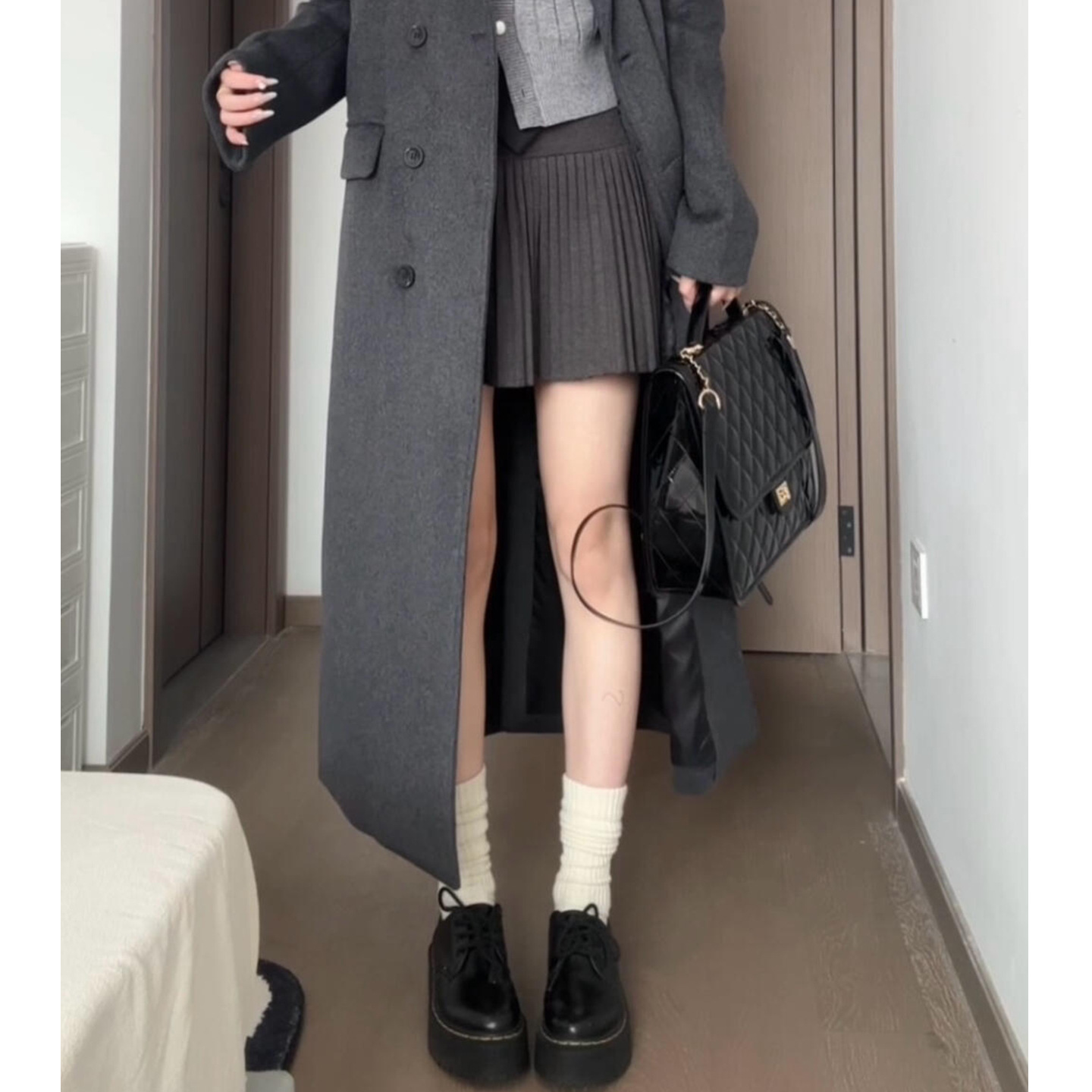 深灰色毛呢百褶裙女秋冬2025新款小个子高腰显瘦休闲a字半身短裙