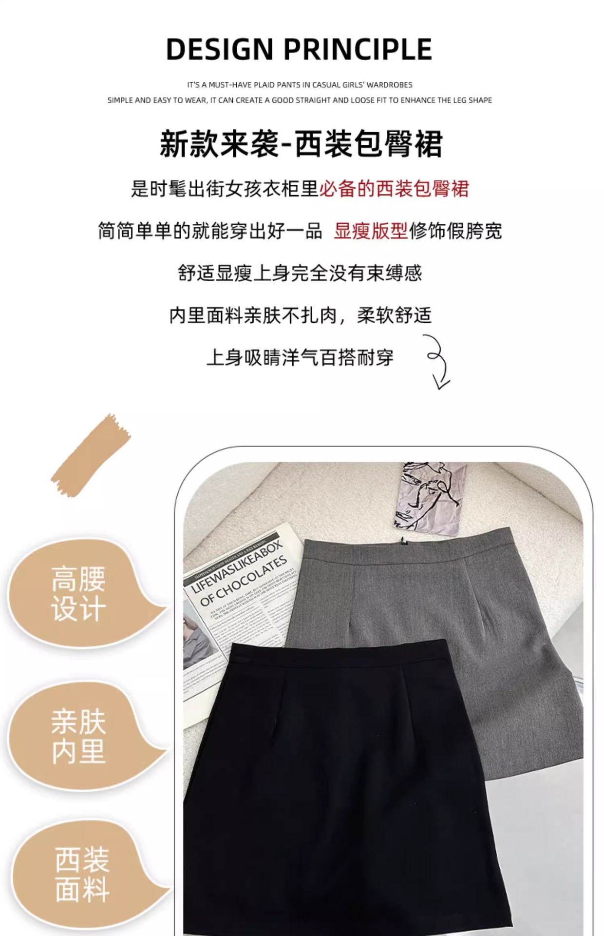 黒いスーツのスカートの女性の夏の2025新型の気質の高い腰のナシの形の小柄なa字は尻のスカートを包みます。