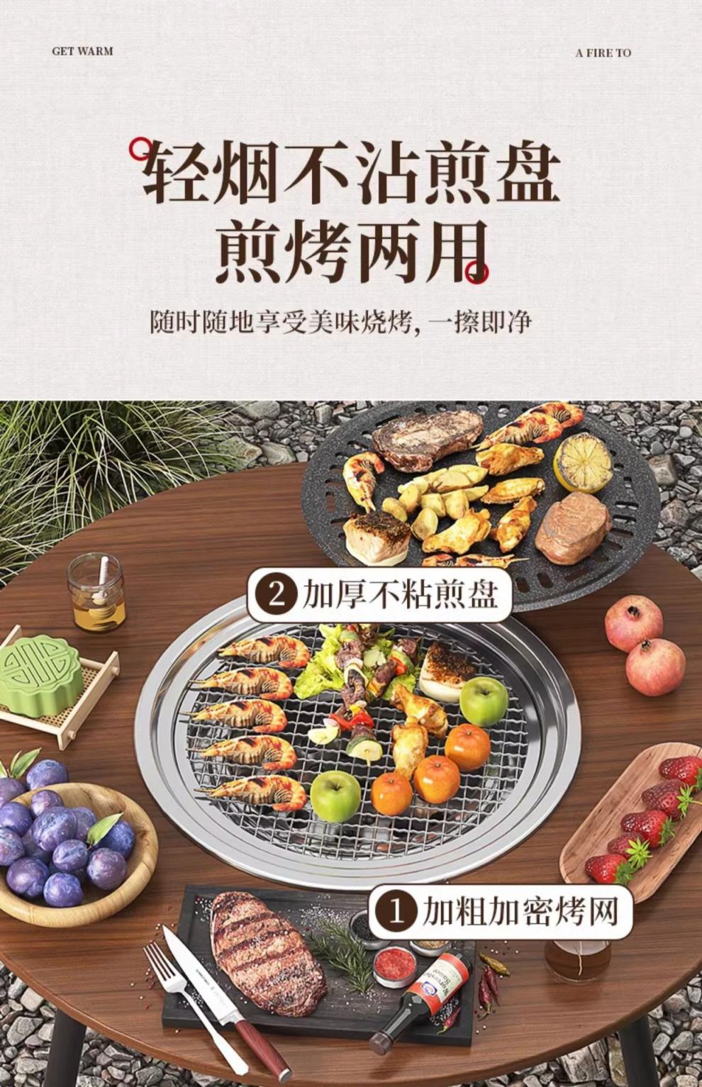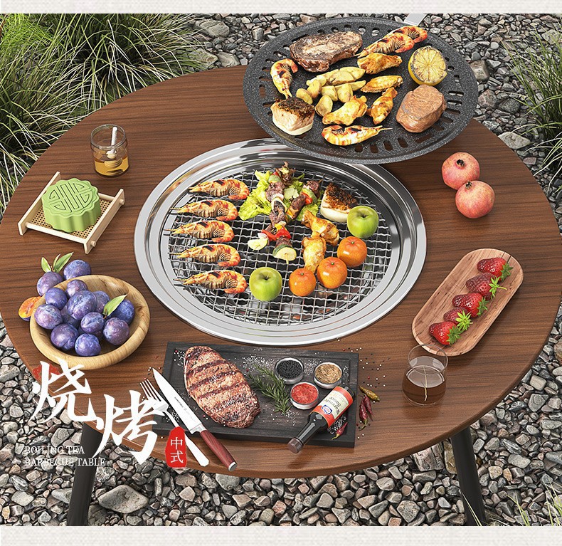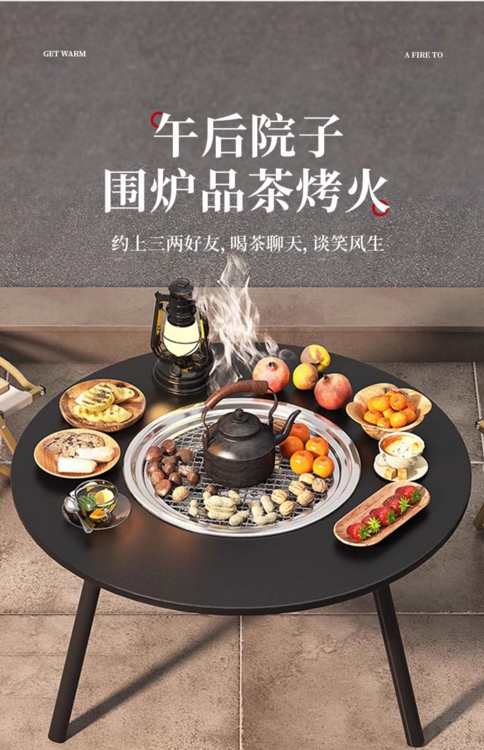 屋外ティーボイラー、中庭無煙バーベキュー、丸型便利な収納テーブル、木炭バーベキューグリル、暖房ストーブ