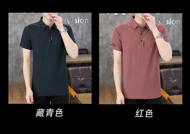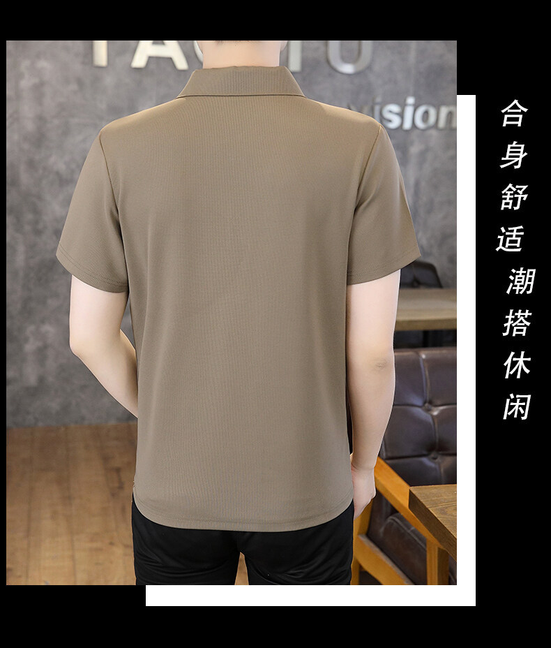 夏メンズアイスシルク半袖Tシャツラペルビジネスポロ中年男性お父さんボトリングシャツメンズトップT