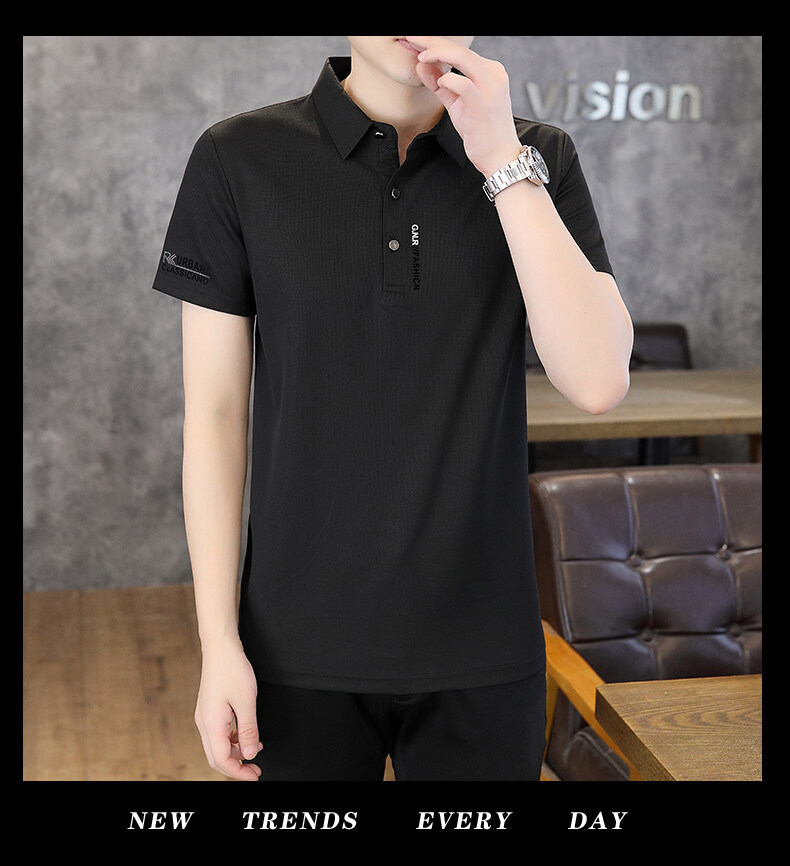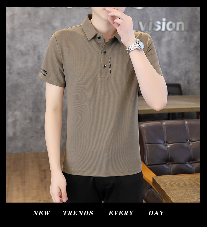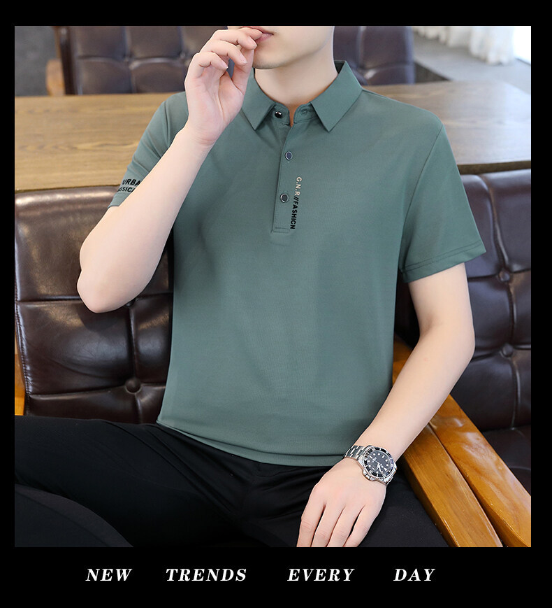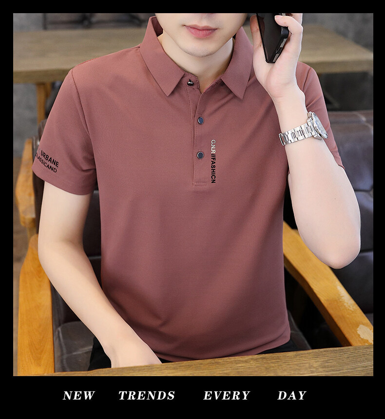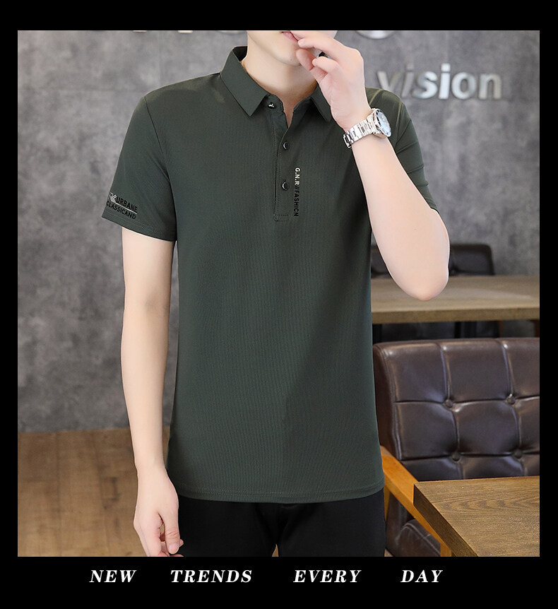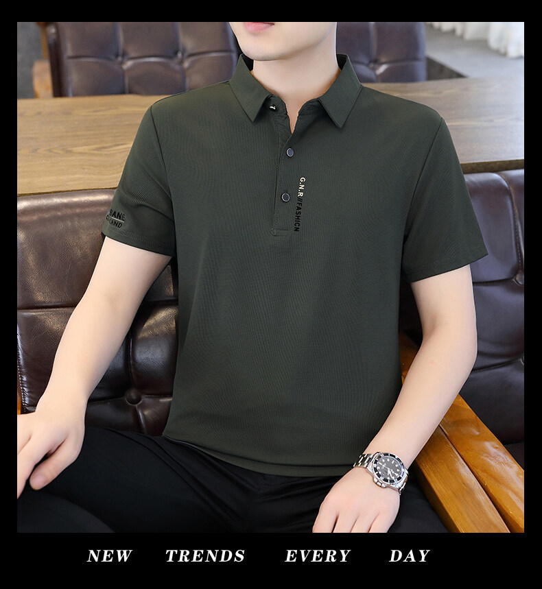 高級夏メンズ半袖ポロトレンディなアイスシルク高弾性カジュアル多用途ラペルTシャツトップスメンズ半袖