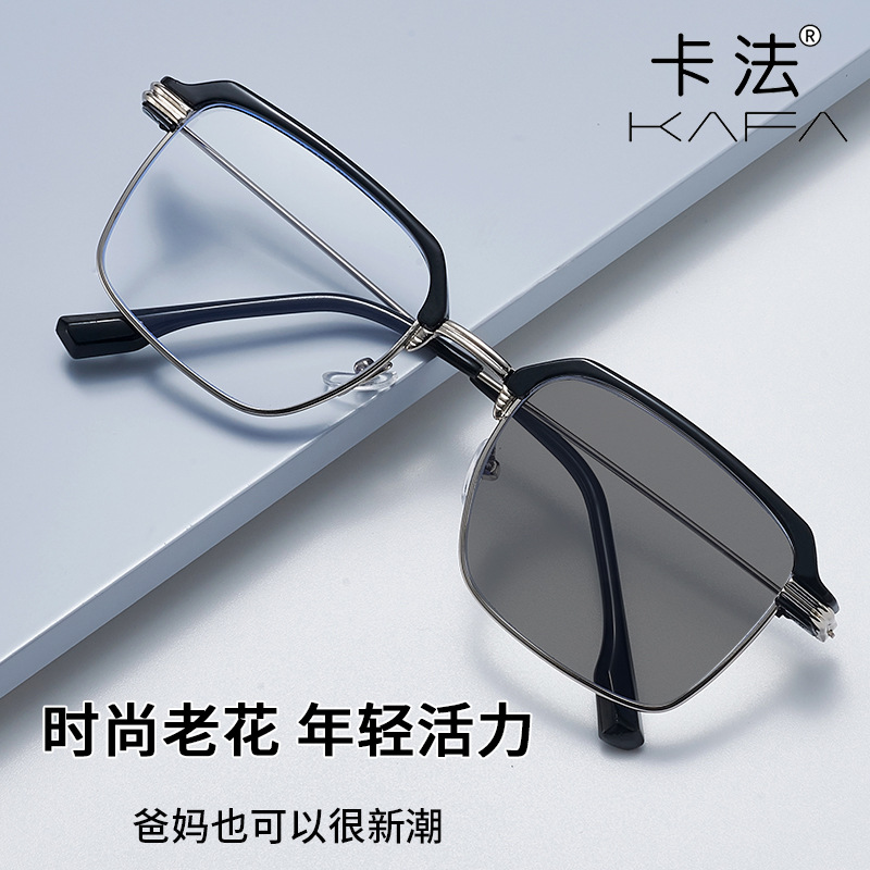 人気のブルーライト防止インターネットセレブXiaohongshu人気のフォトクロミック高精細トレンディなハーフフレーム卸売メーカー老眼鏡