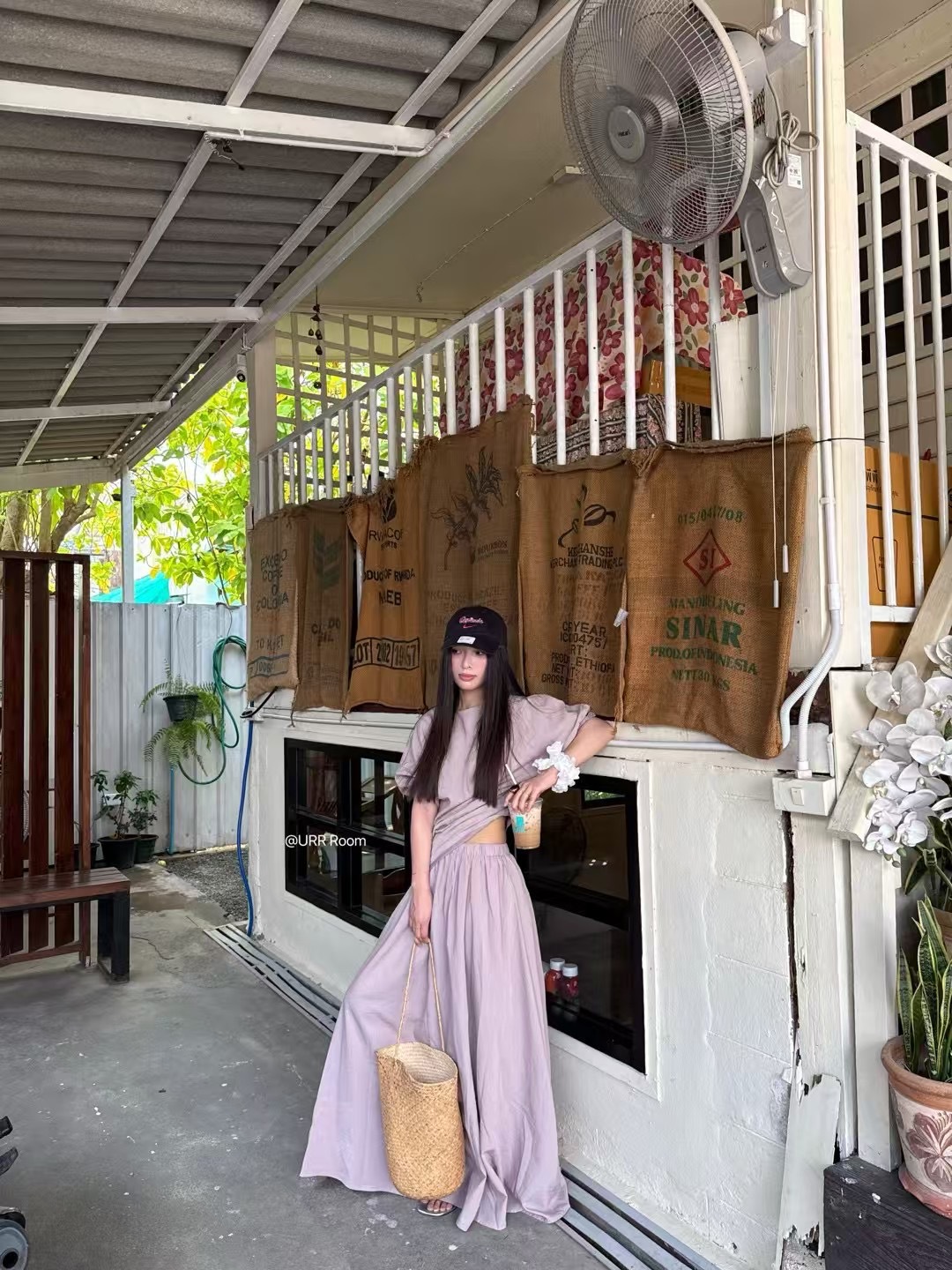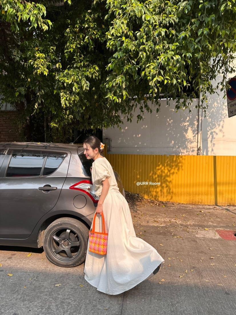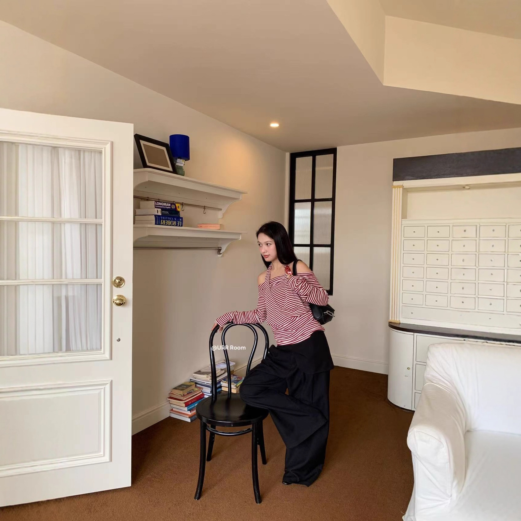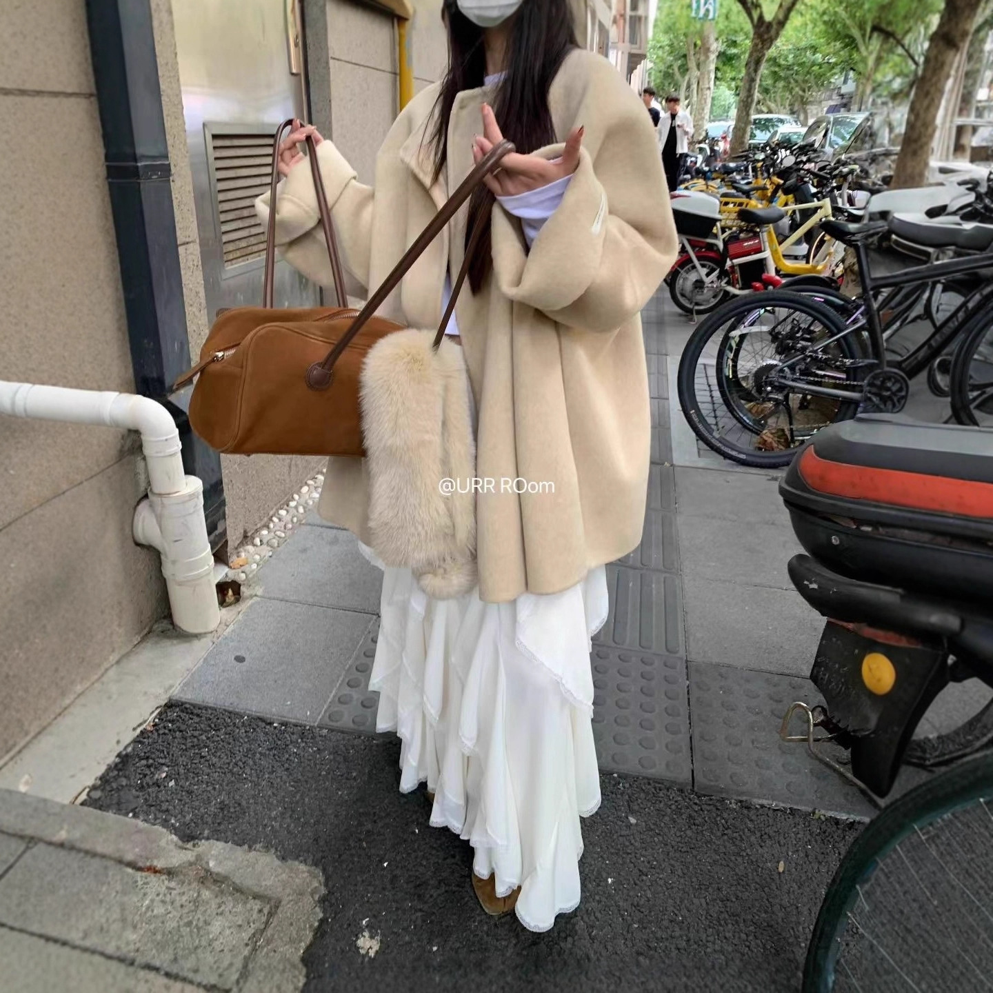 URR Room2025法式褶皱收腰T恤+双层高腰阔腿长裙半身裙慵懒两件套