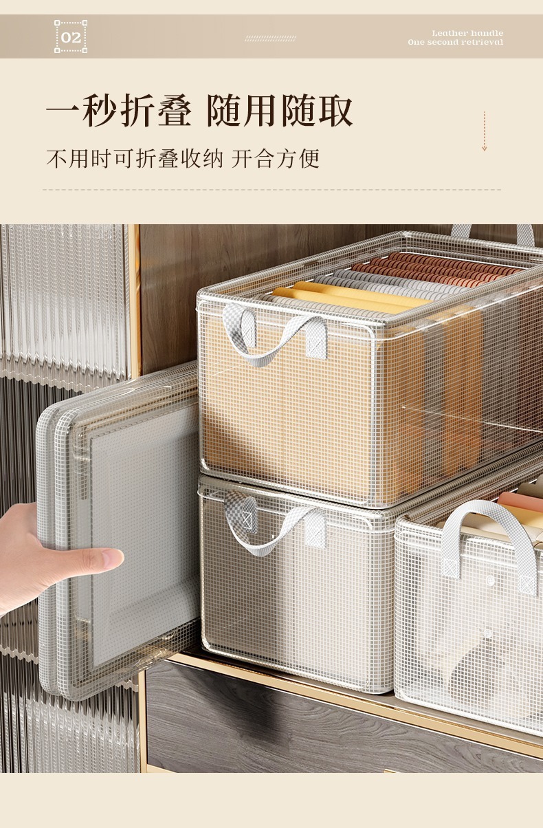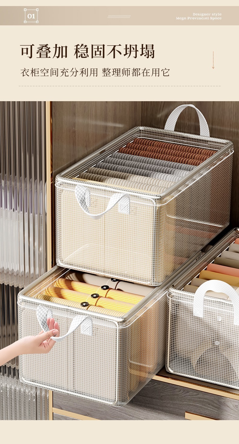 新品取付無しスチールラック透明収納カゴ蓋無し折りたたみ衣類ズボン収納カゴ靴下収納収納ケース