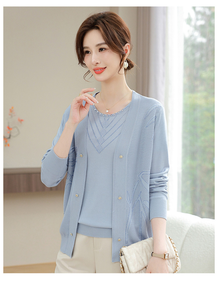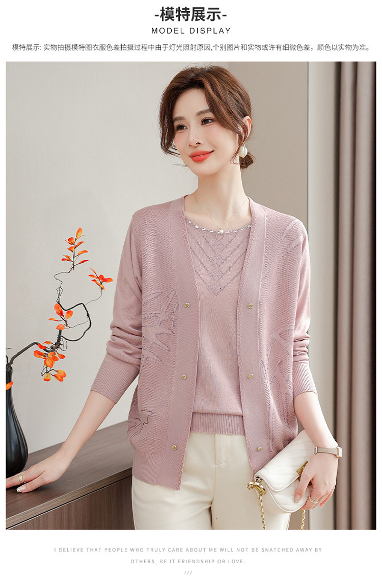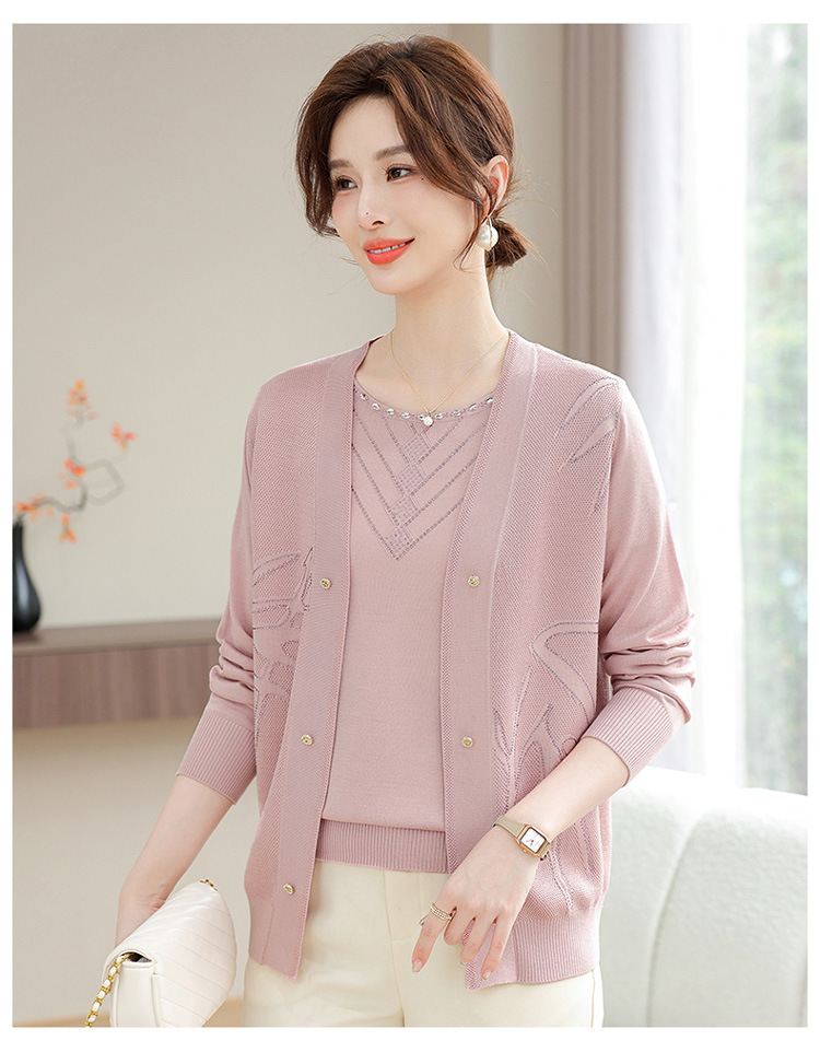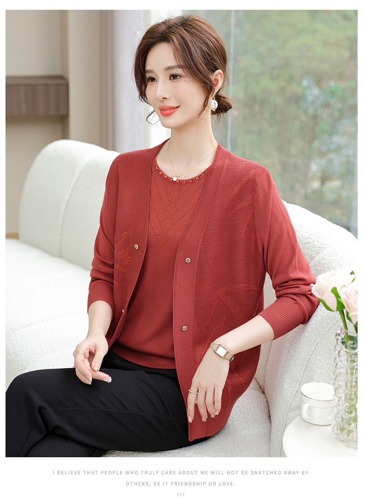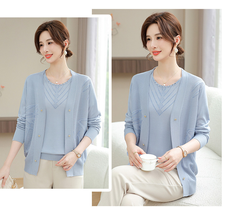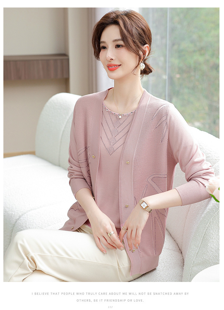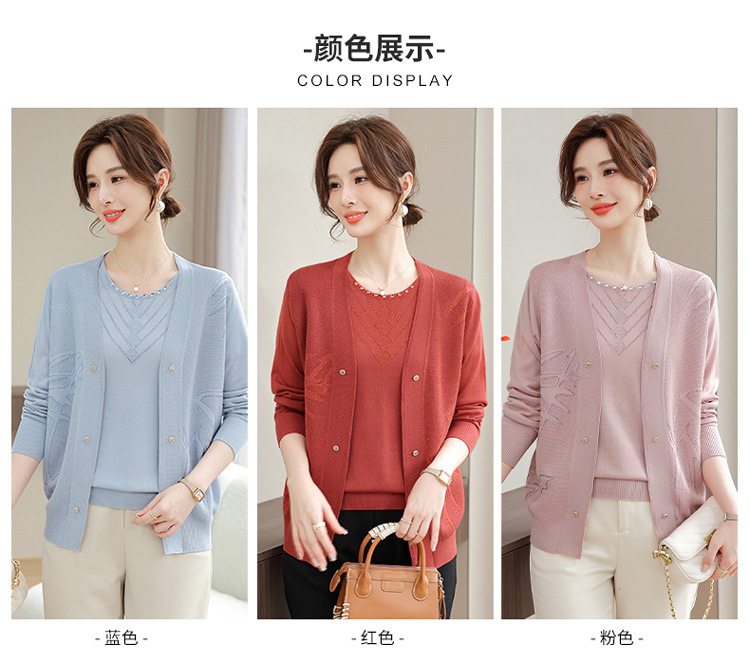 ファッション中年母洋気ニット新純色2点セット2025春秋中高年女性気質上着