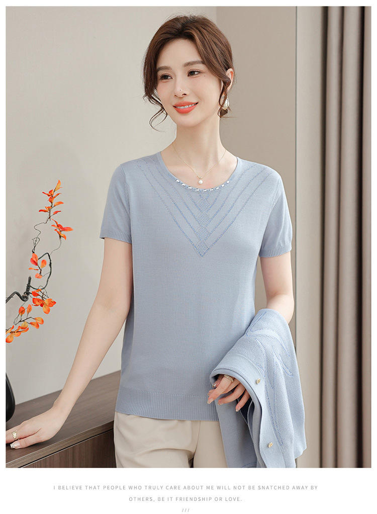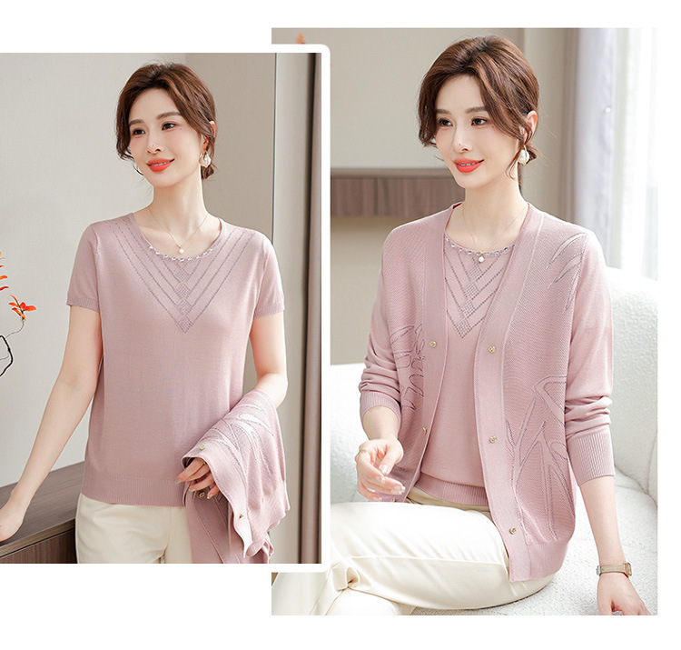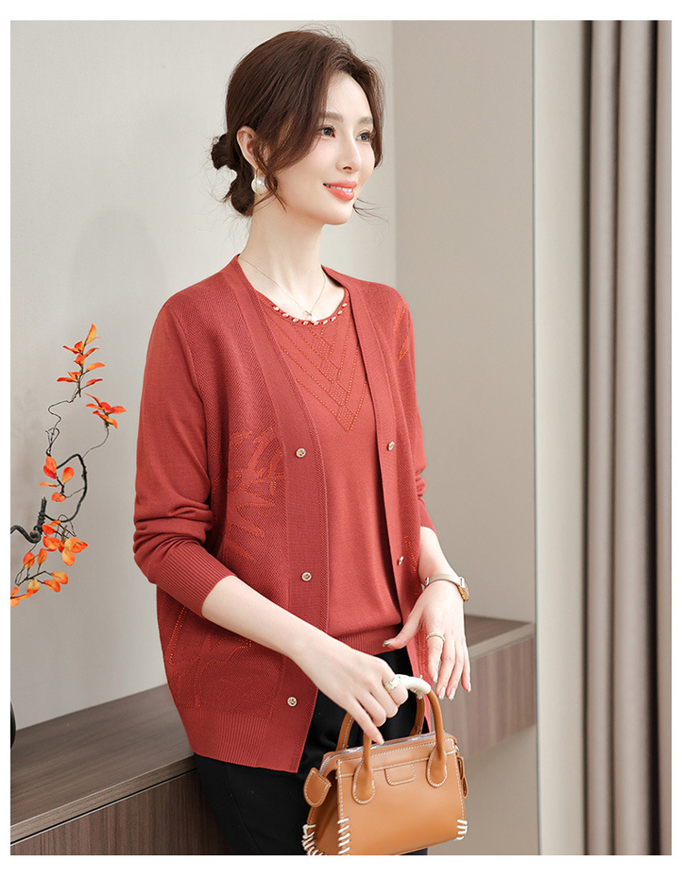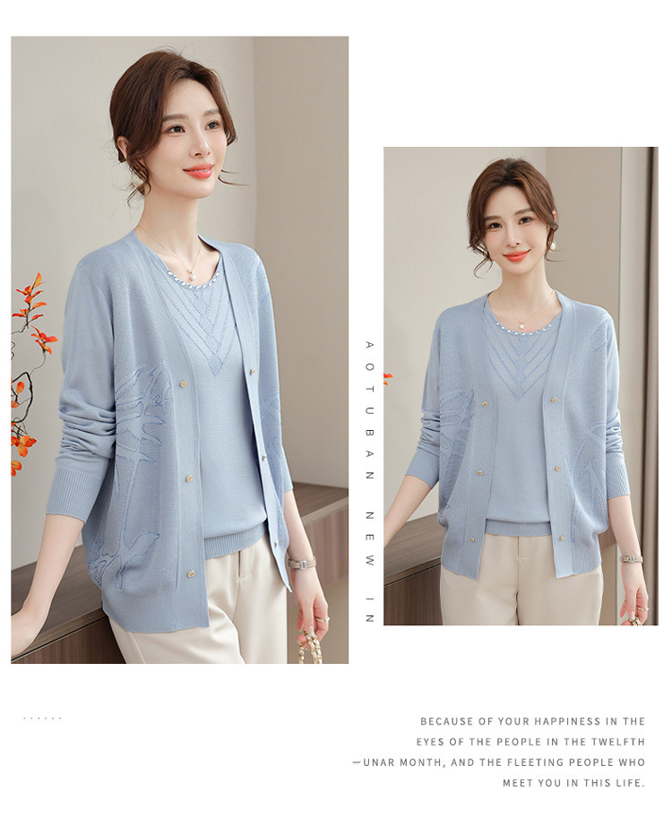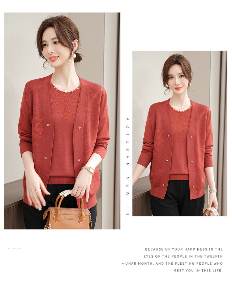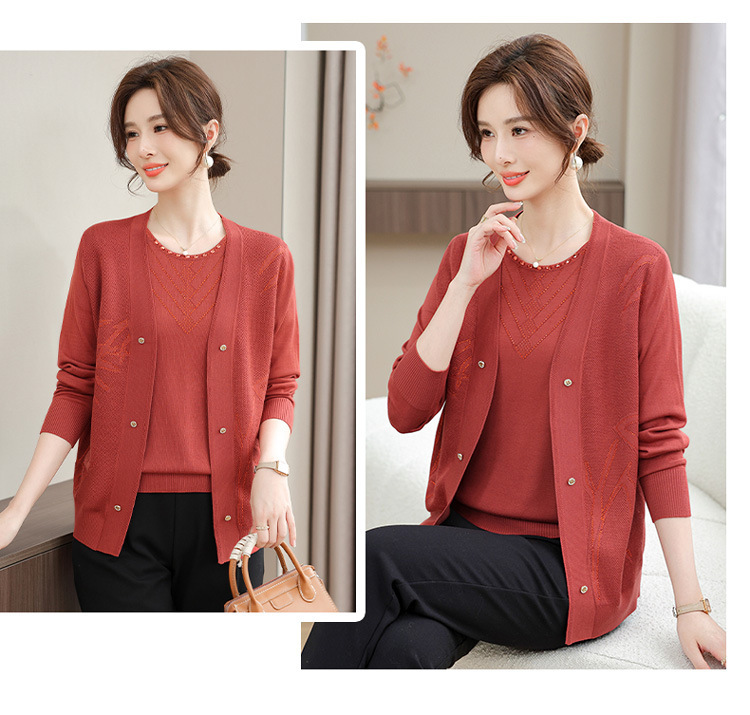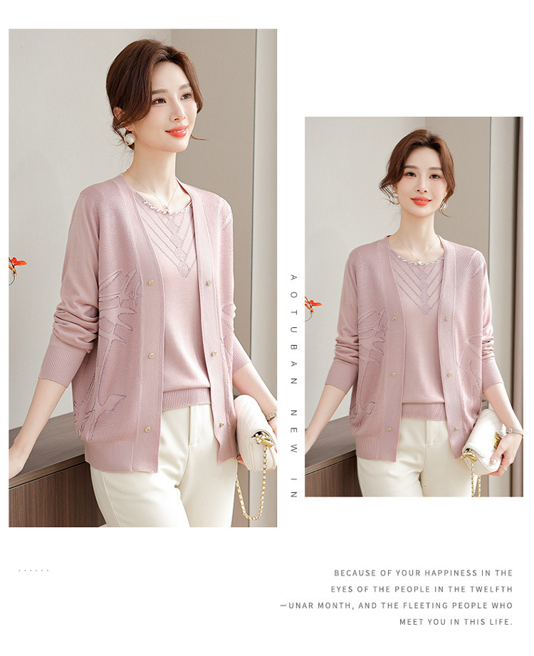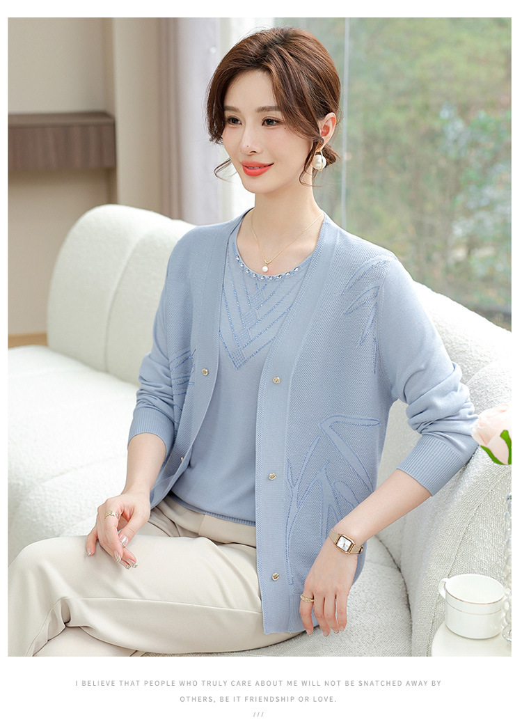 ファッション中年母洋気ニット新純色2点セット2025春秋中高年女性気質上着
