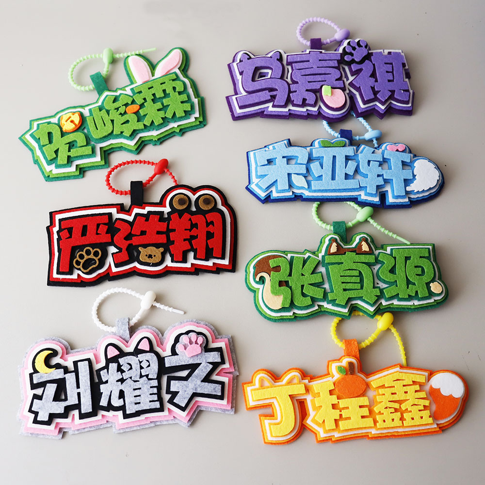 全セットの鞠婧イー不織布カバンの名前のキーホルダーの文字の荷物の札の鞠家は周辺の食事を応援します。