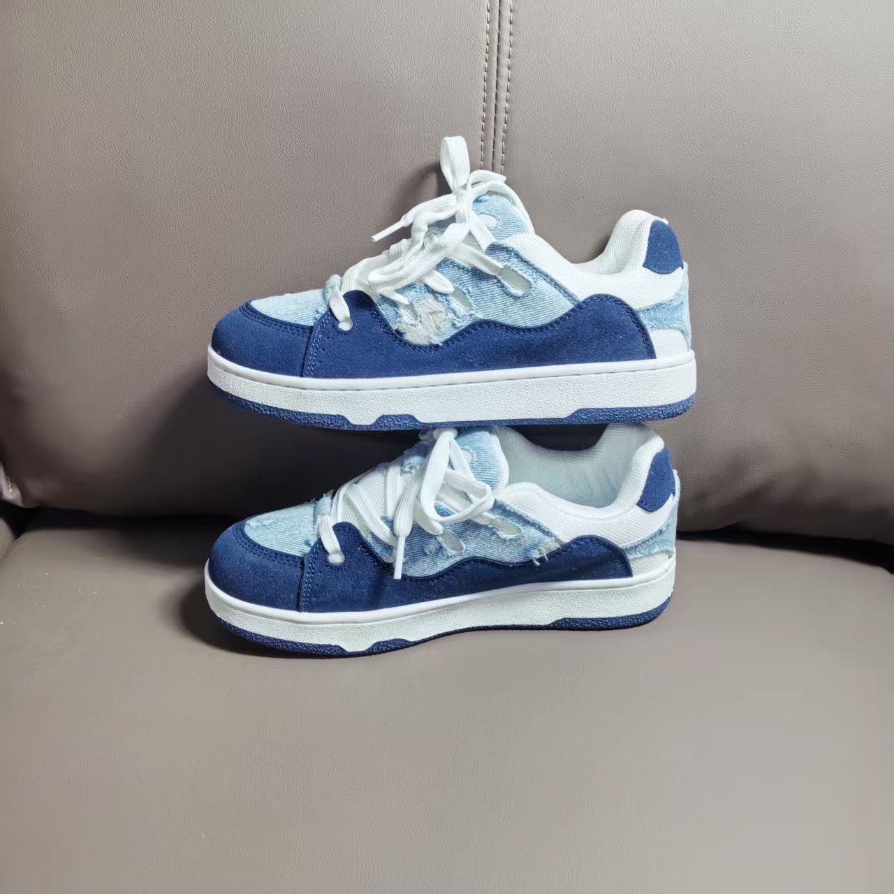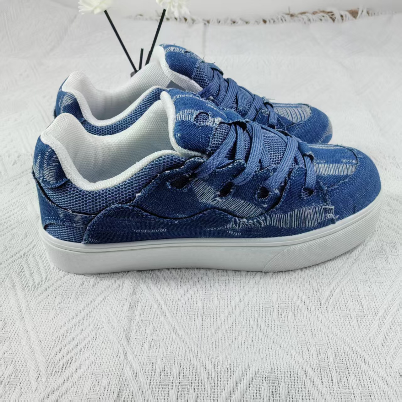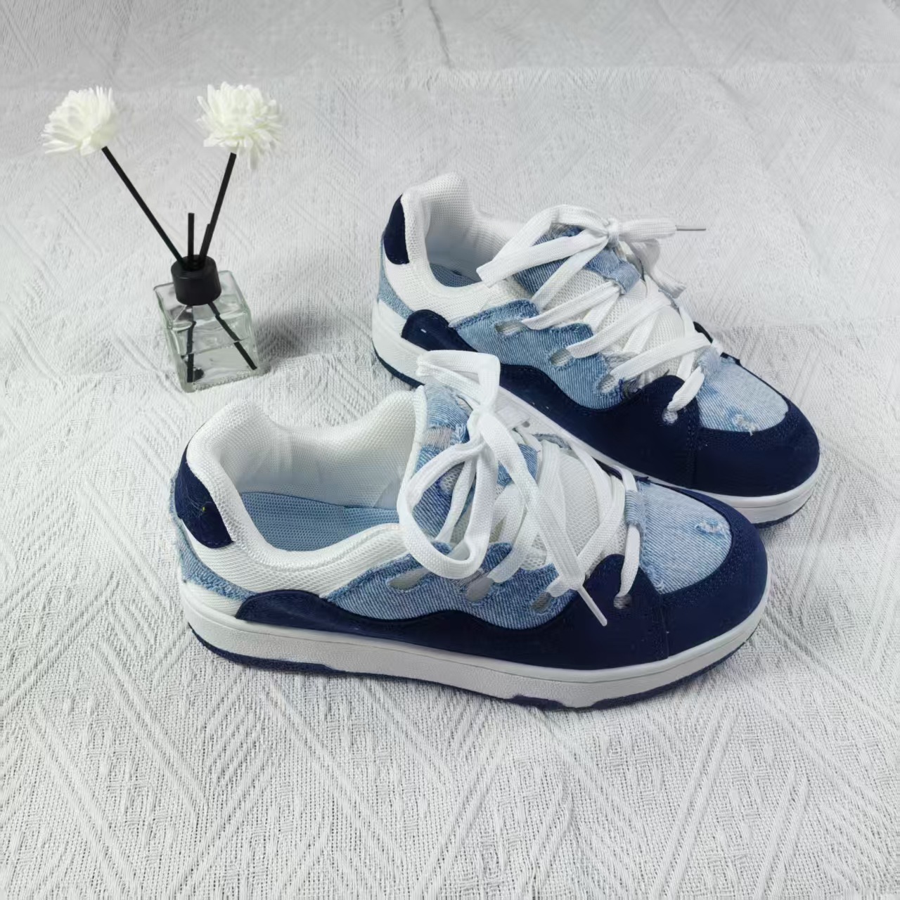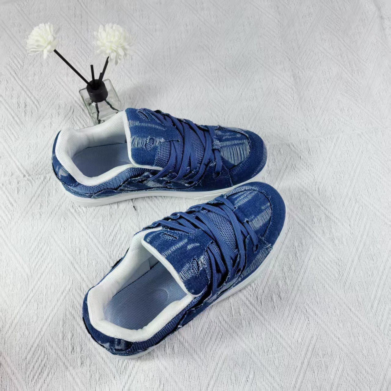 小衆レジャー板靴男2025新型夏通気薄いデニムの青い靴が低いです。