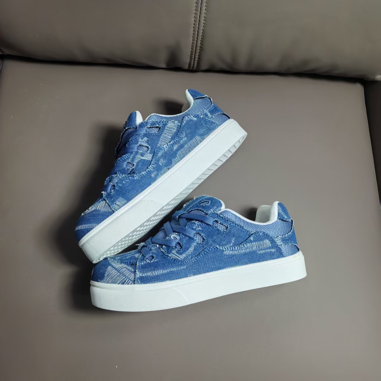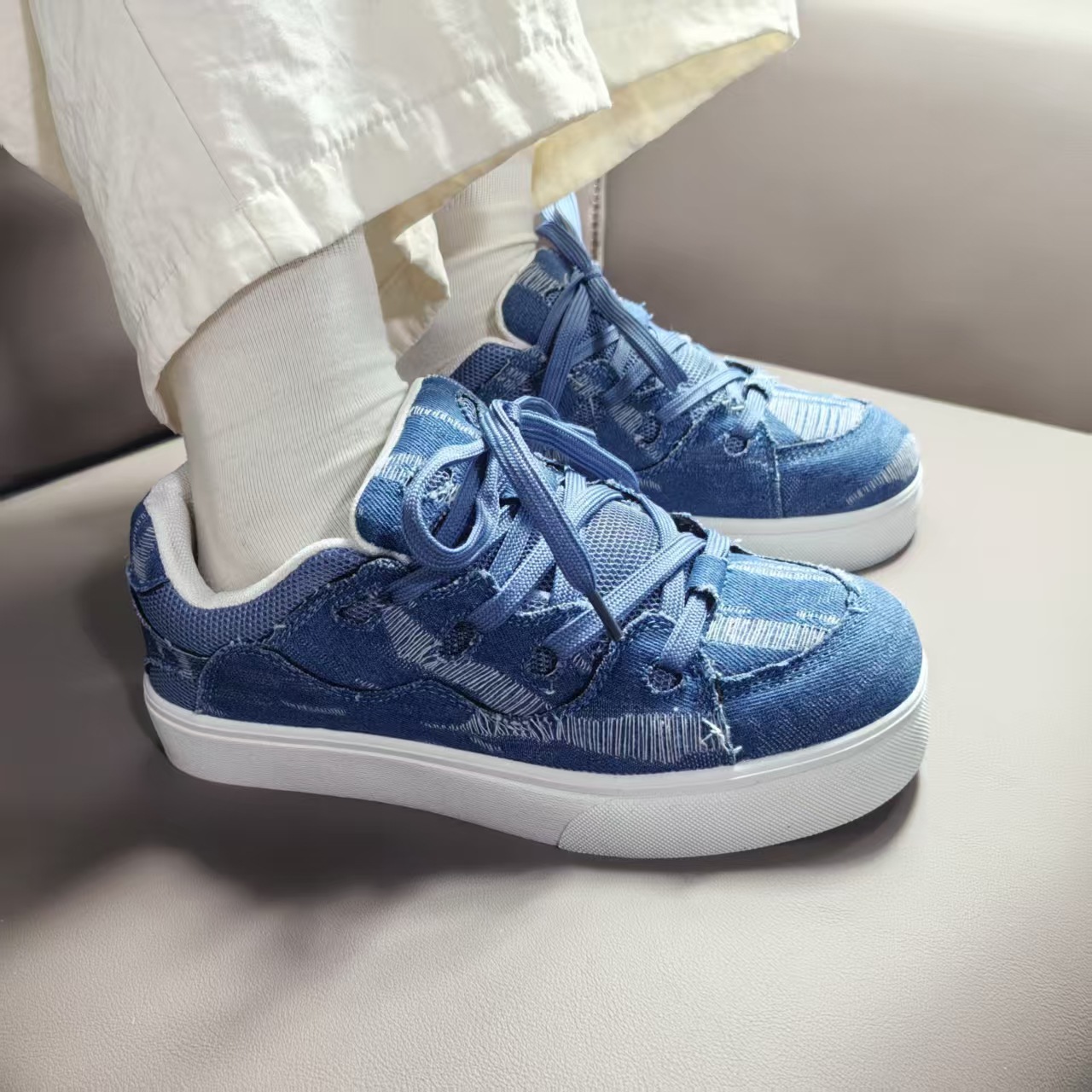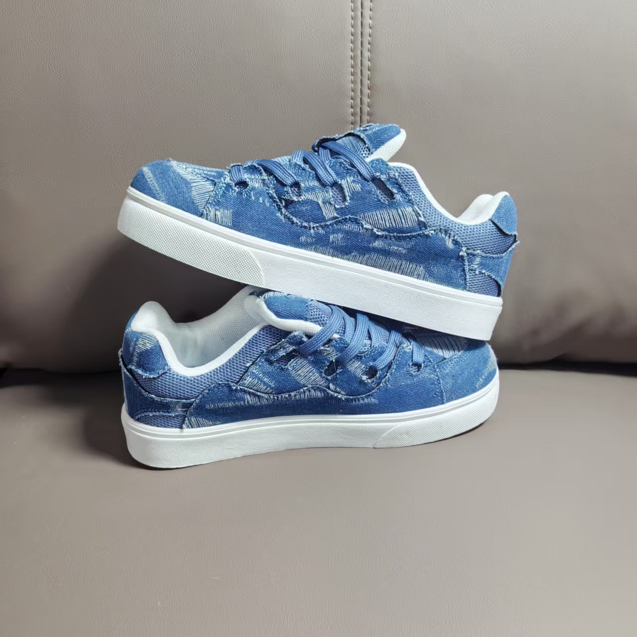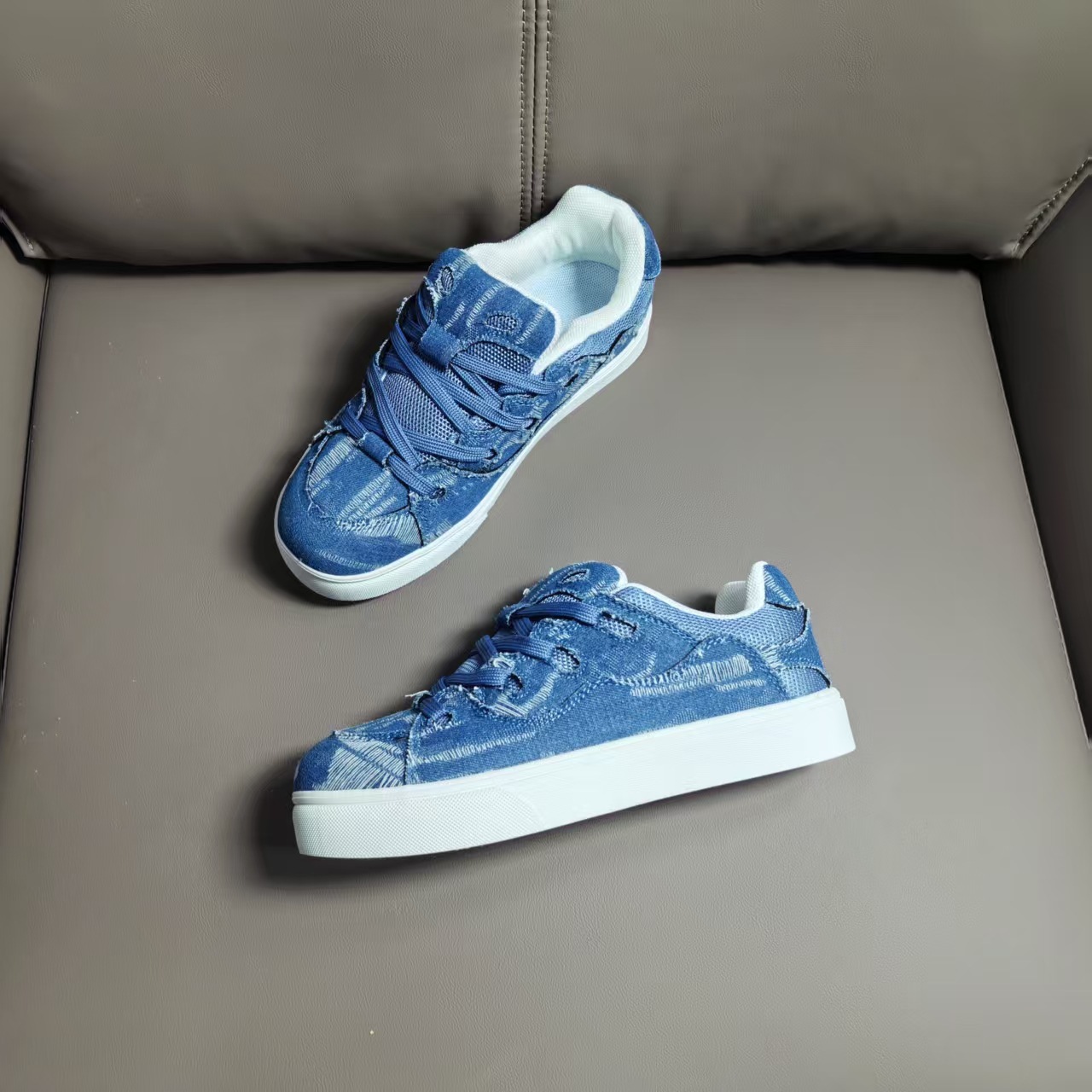 小衆レジャー板靴男2025新型夏通気薄いデニムの青い靴が低いです。
