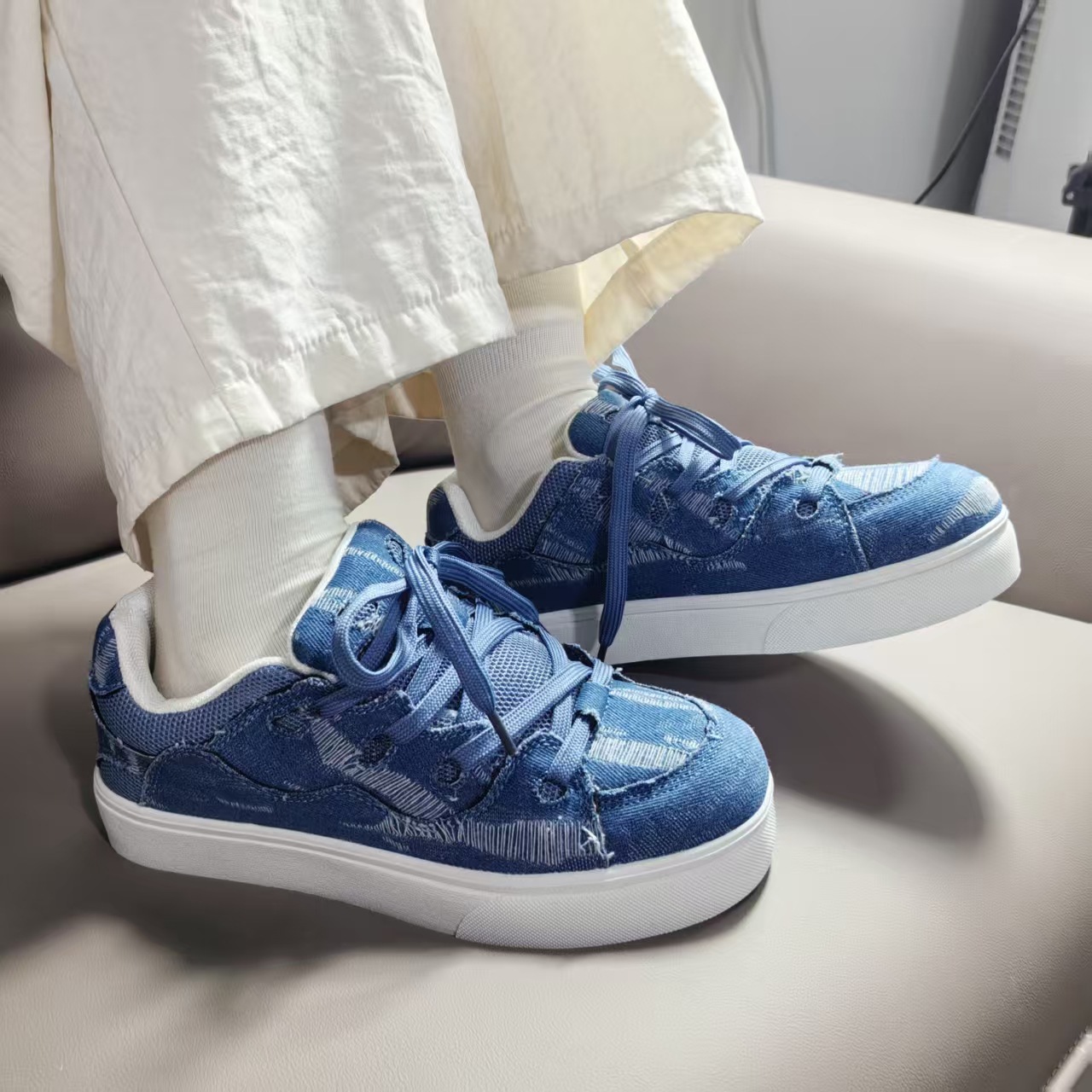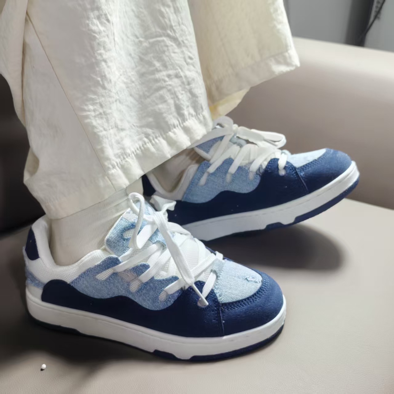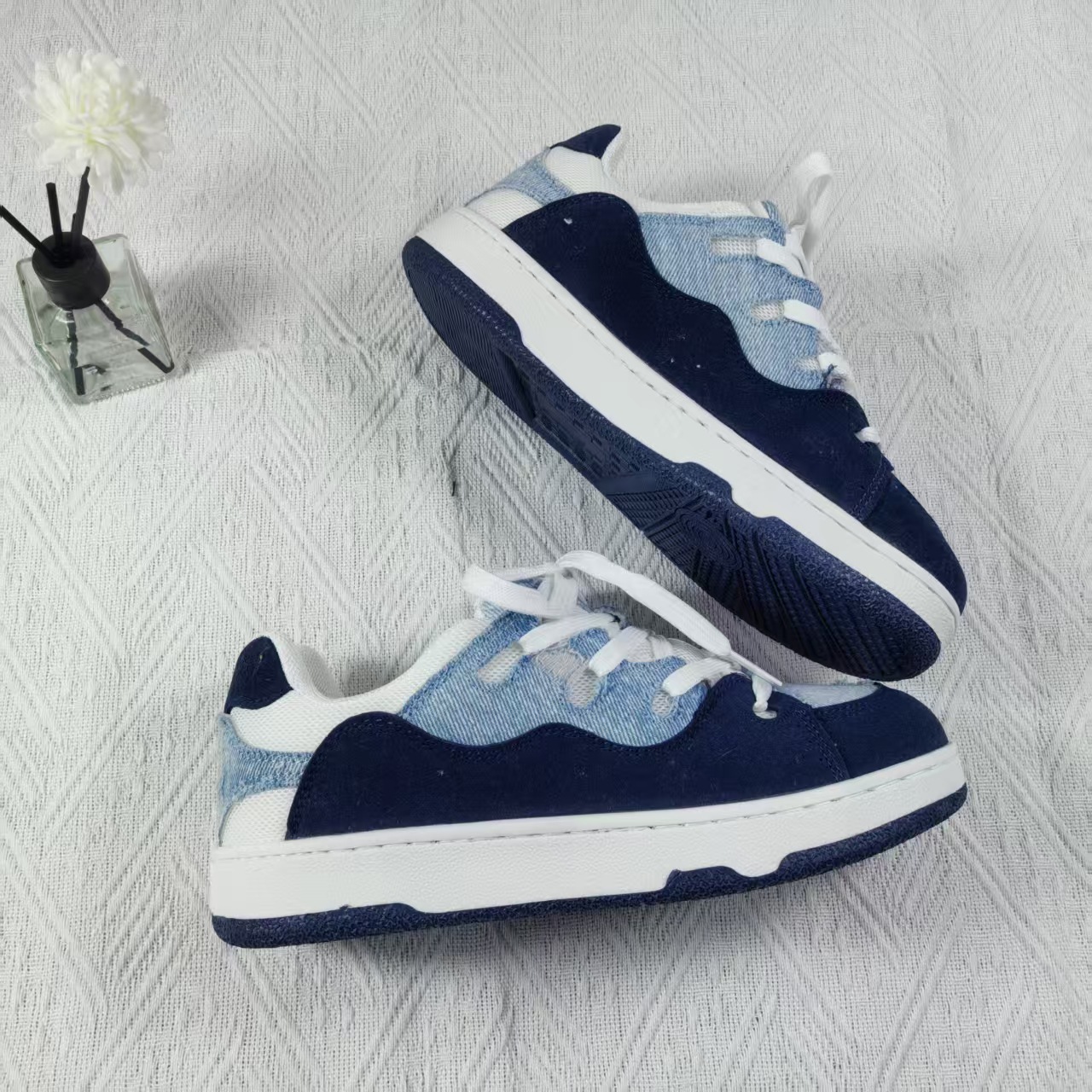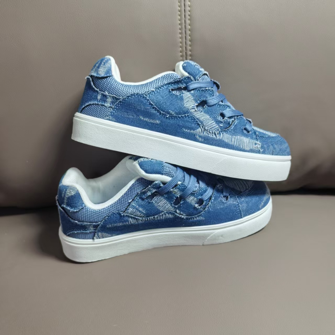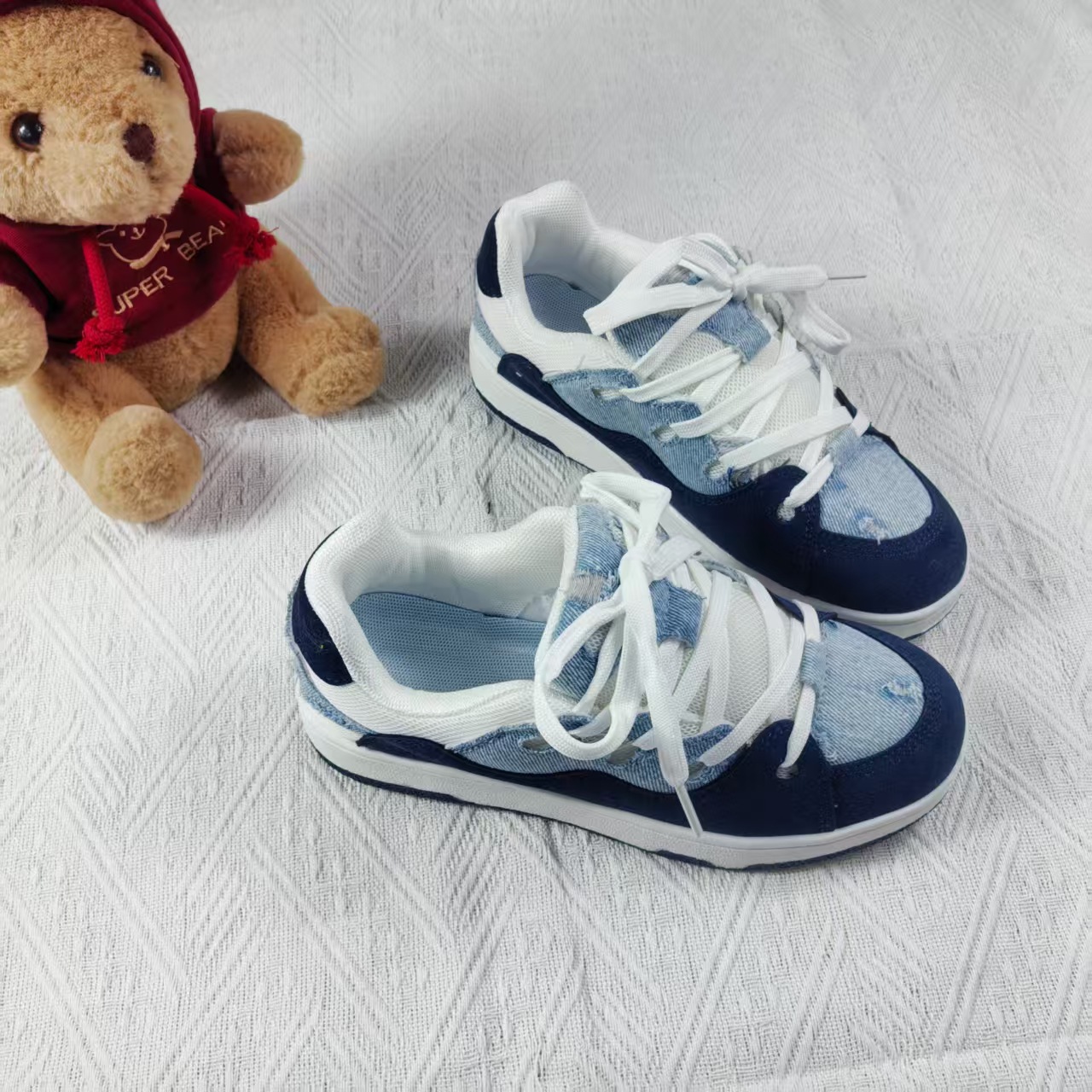 小衆レジャー板靴男2025新型夏通気薄いデニムの青い靴が低いです。