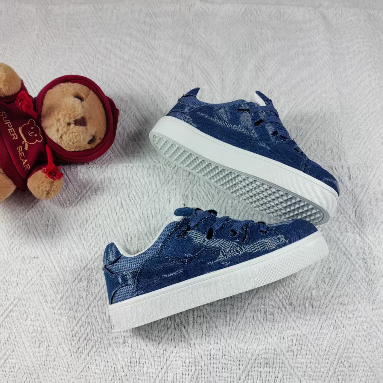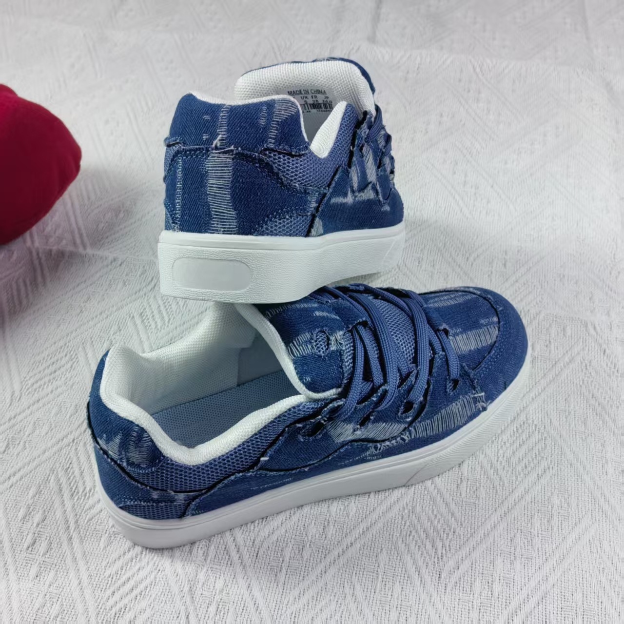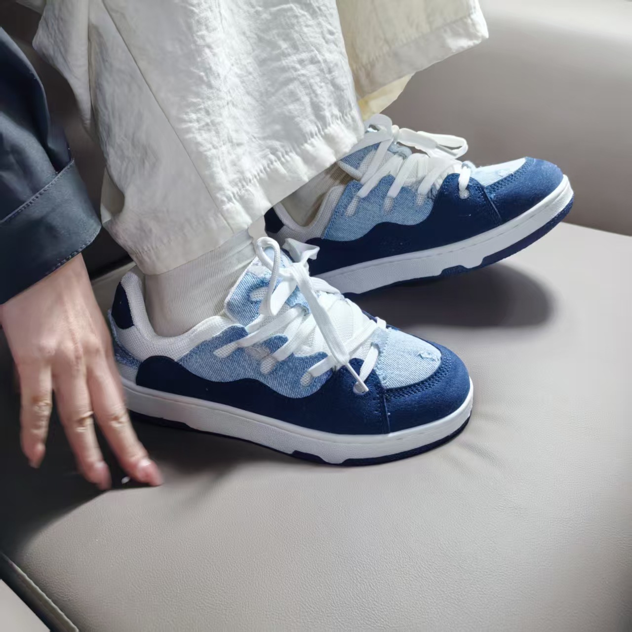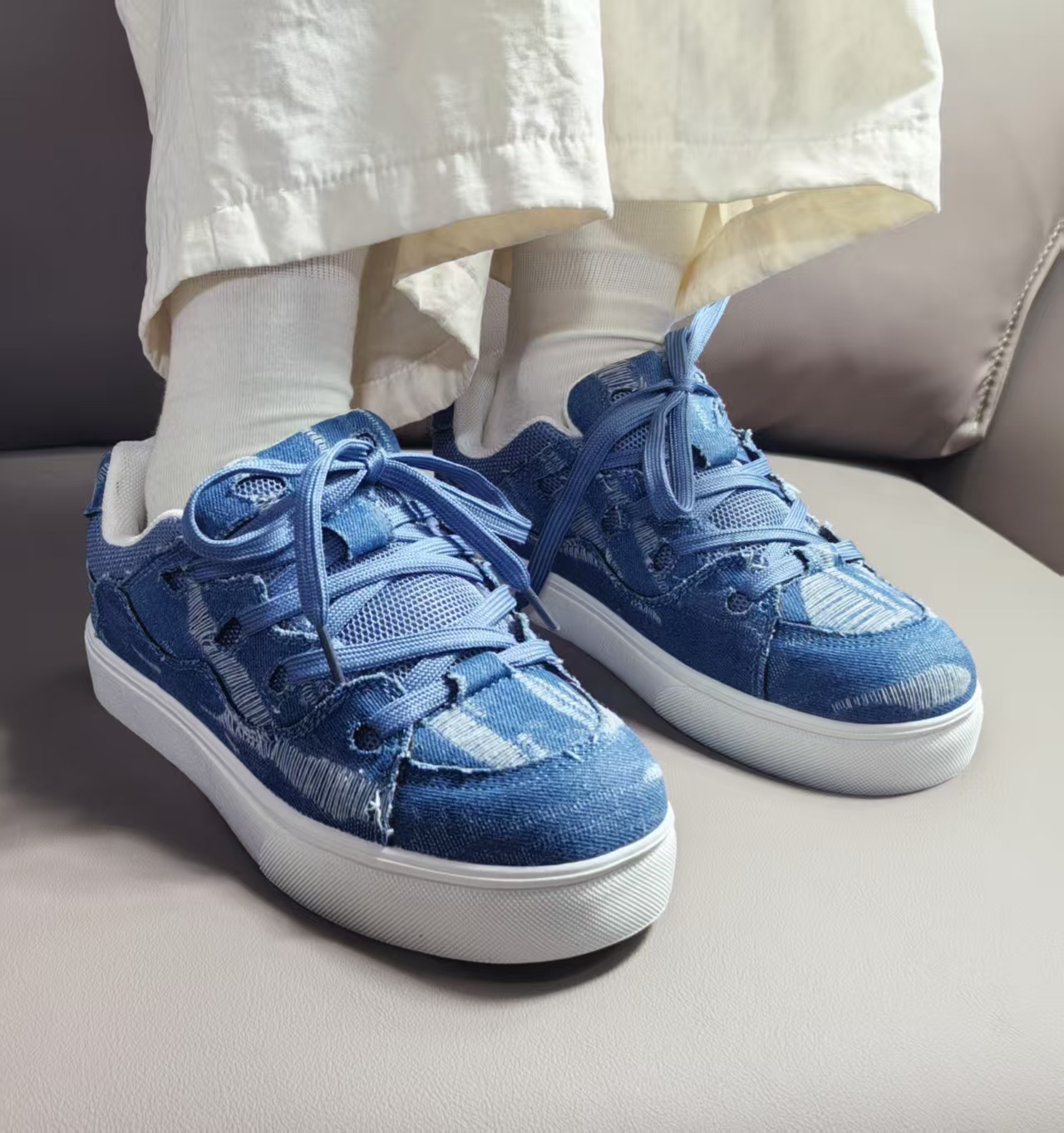 小衆レジャー板靴男2025新型夏通気薄いデニムの青い靴が低いです。
