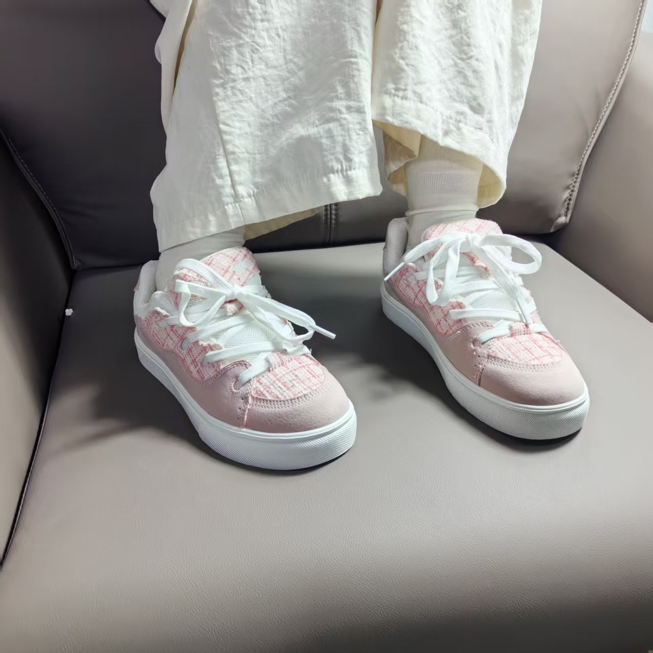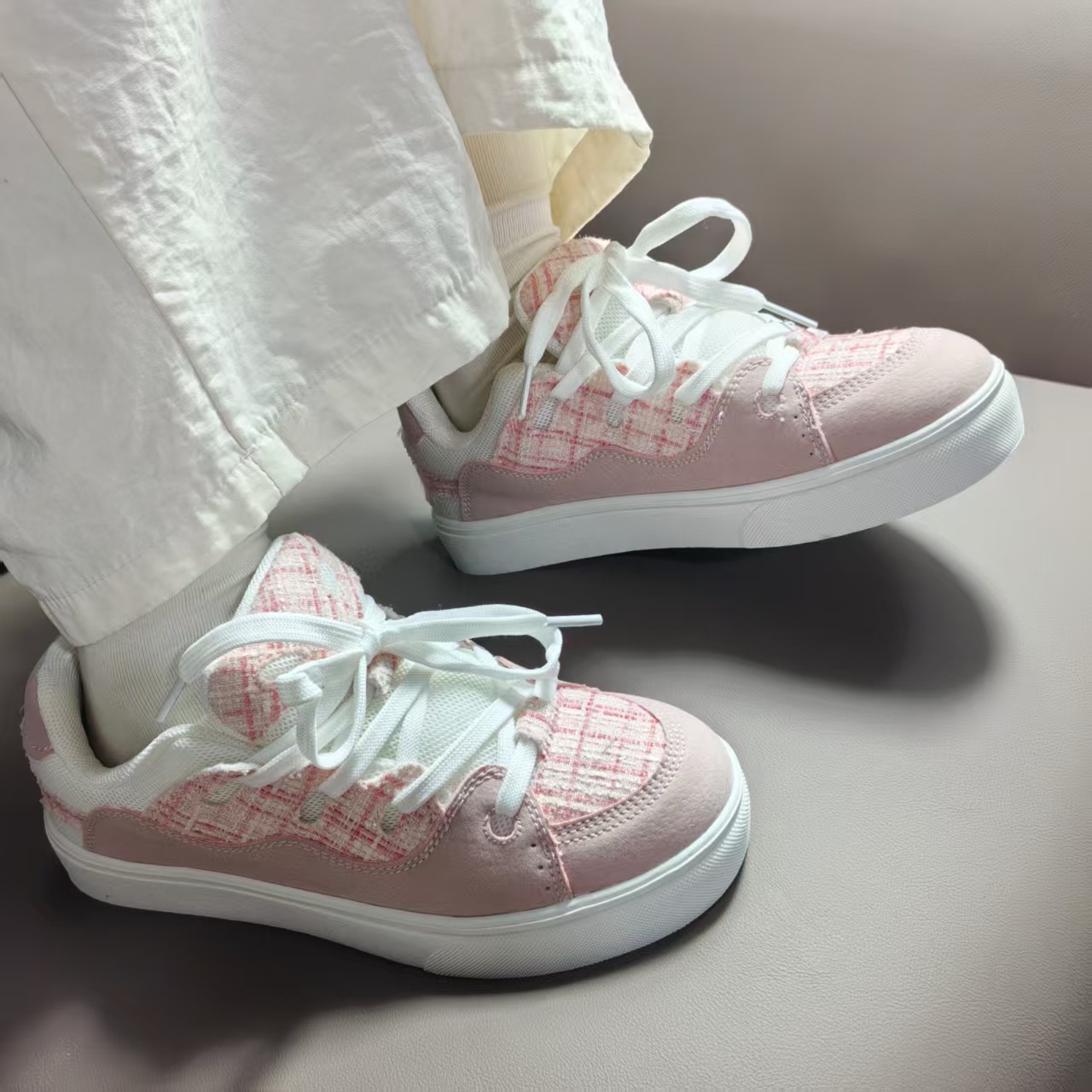 男女の香港風カップルのパン靴ins潮2024夏の新型学生はレジャー運動板靴を履いている