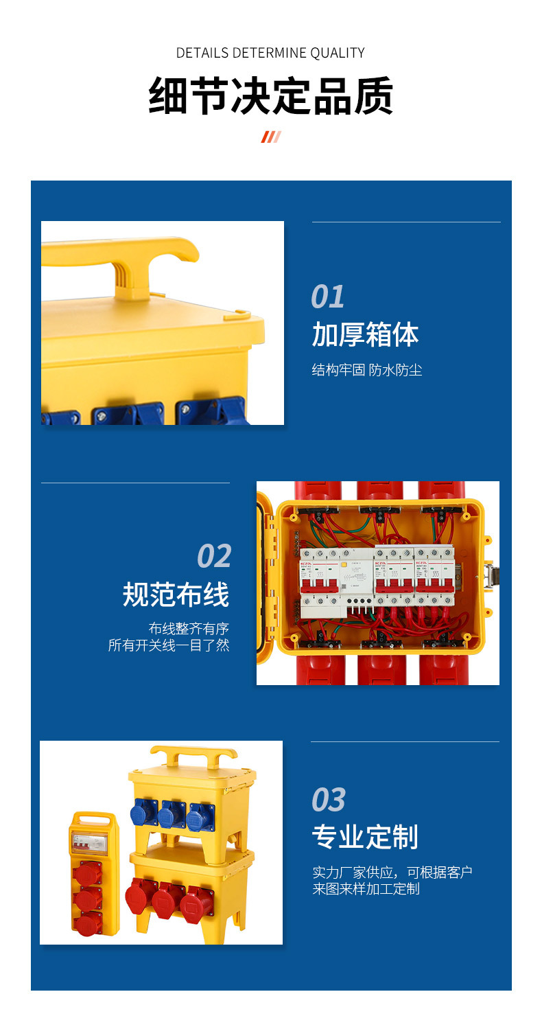 配電ボックス ポータブル三段式工事現場ボックス 屋外用ハンドバッグ型ボックス 防雨ボックス 移動式仮設建築ボックス 耐爆発型