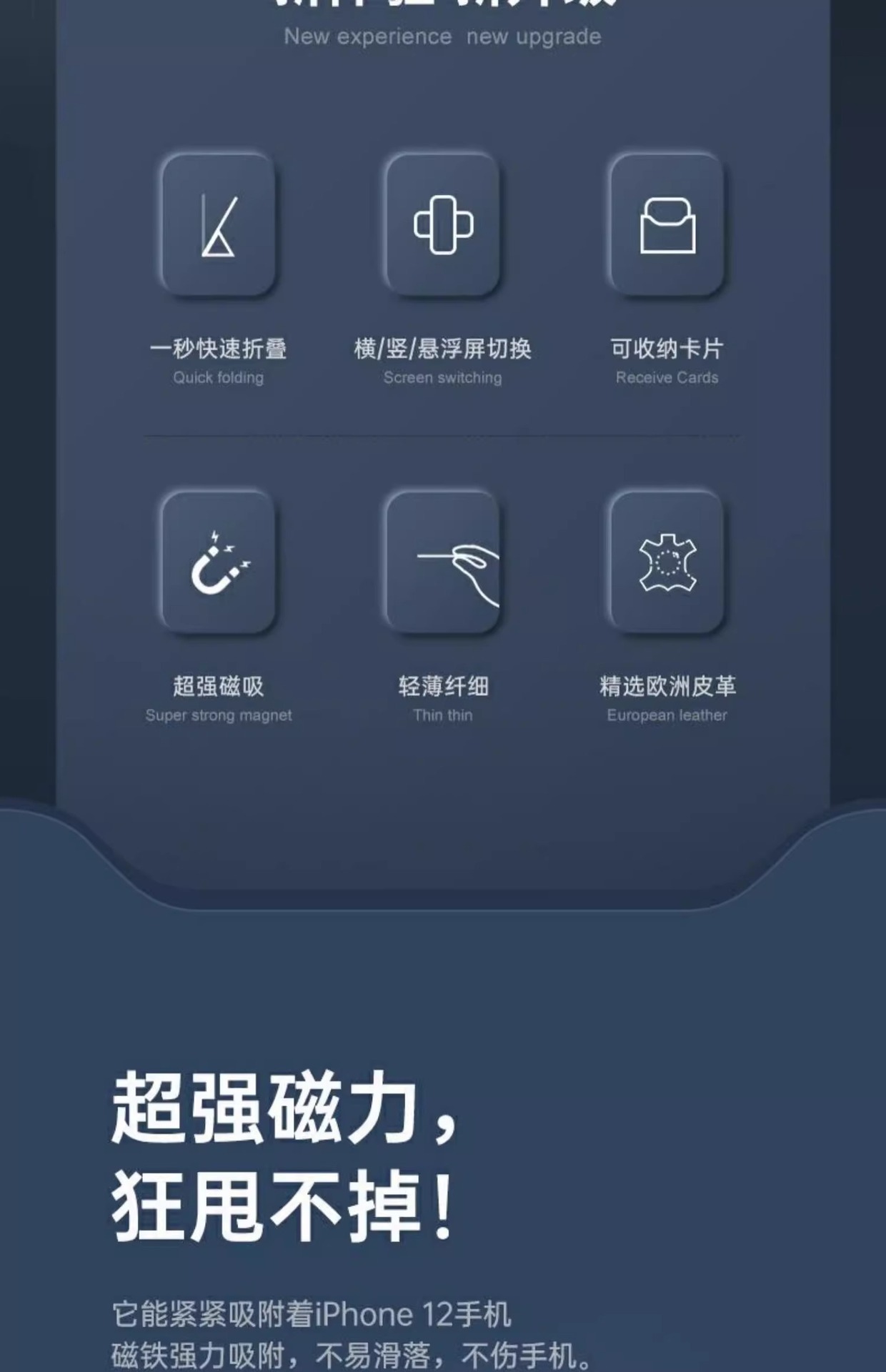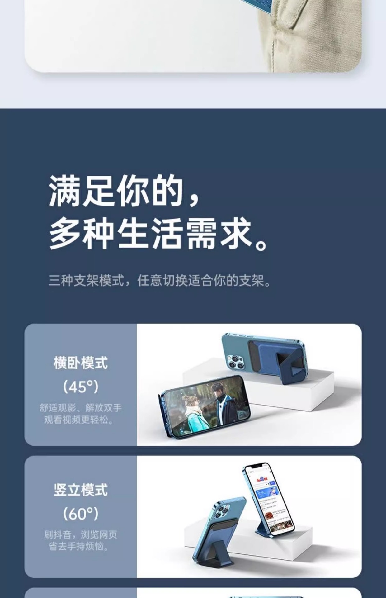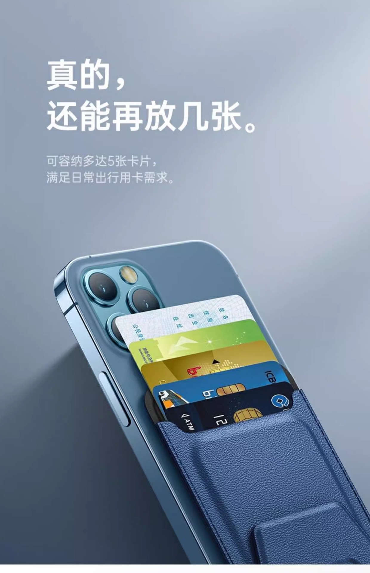 适用苹果iPhone系列Magsafe磁吸卡包支架移动可调节支架卡套皮革