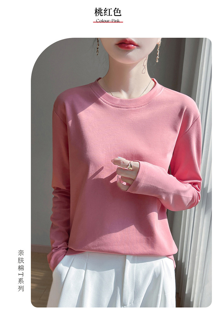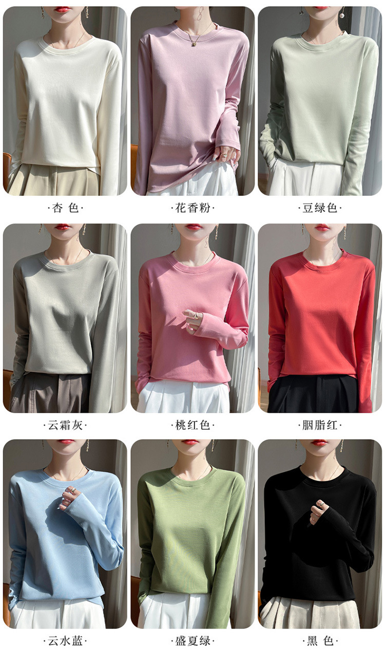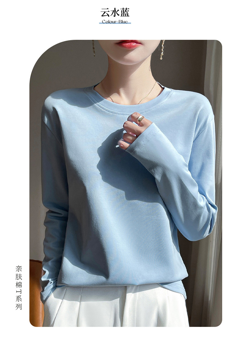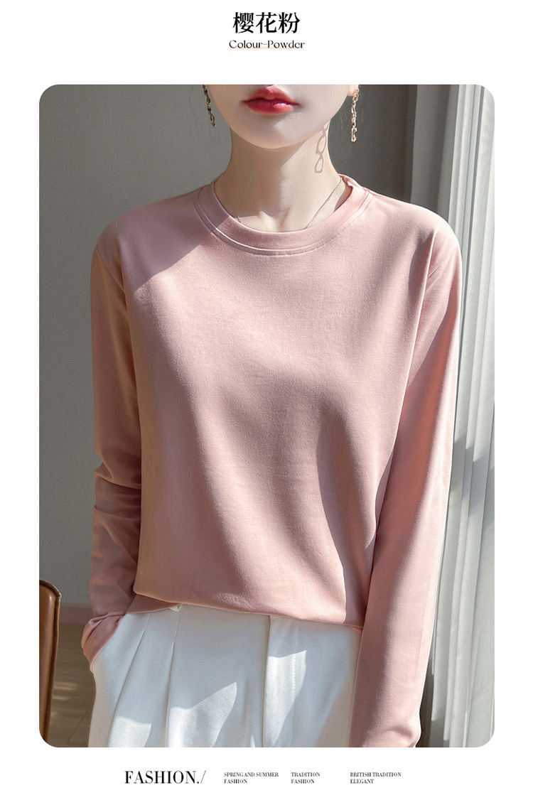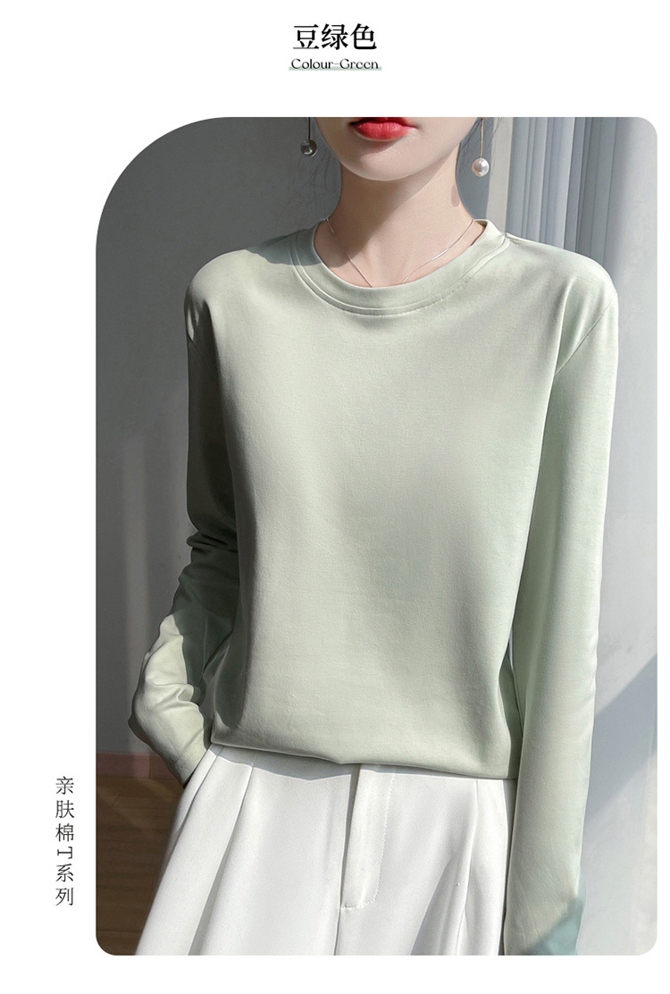 ラウンドネックアイスコールドコットン長袖Tシャツ女性用2025春夏新スタイル多用途綿ボトムシャツトップ女性用