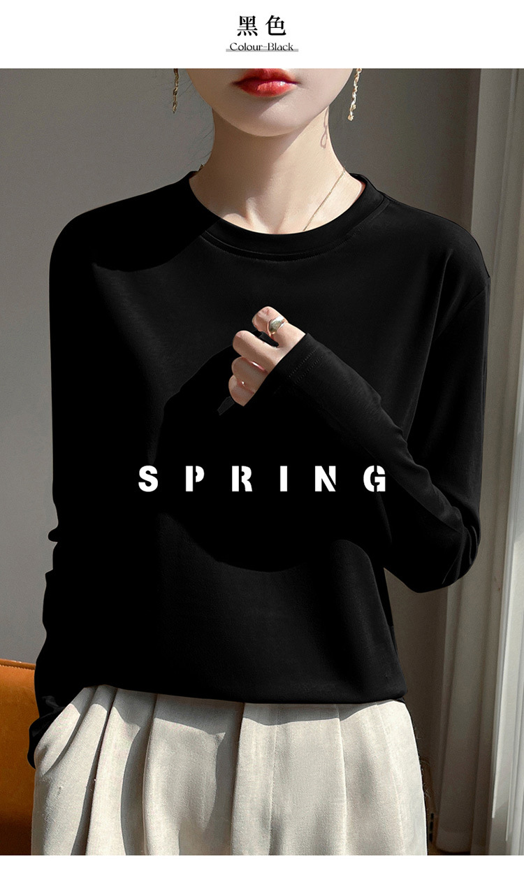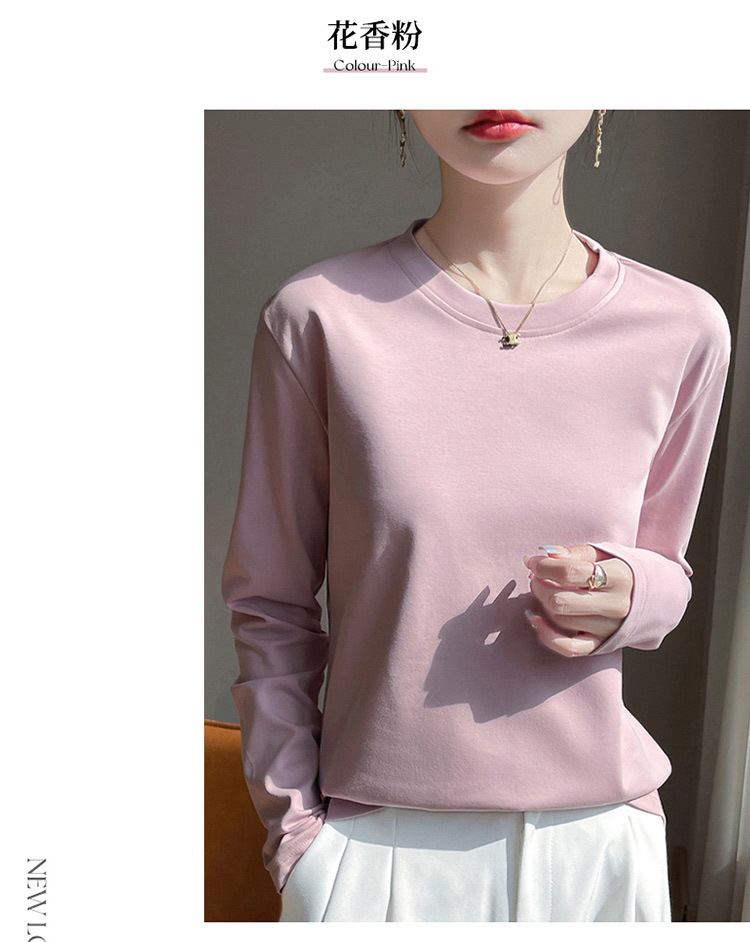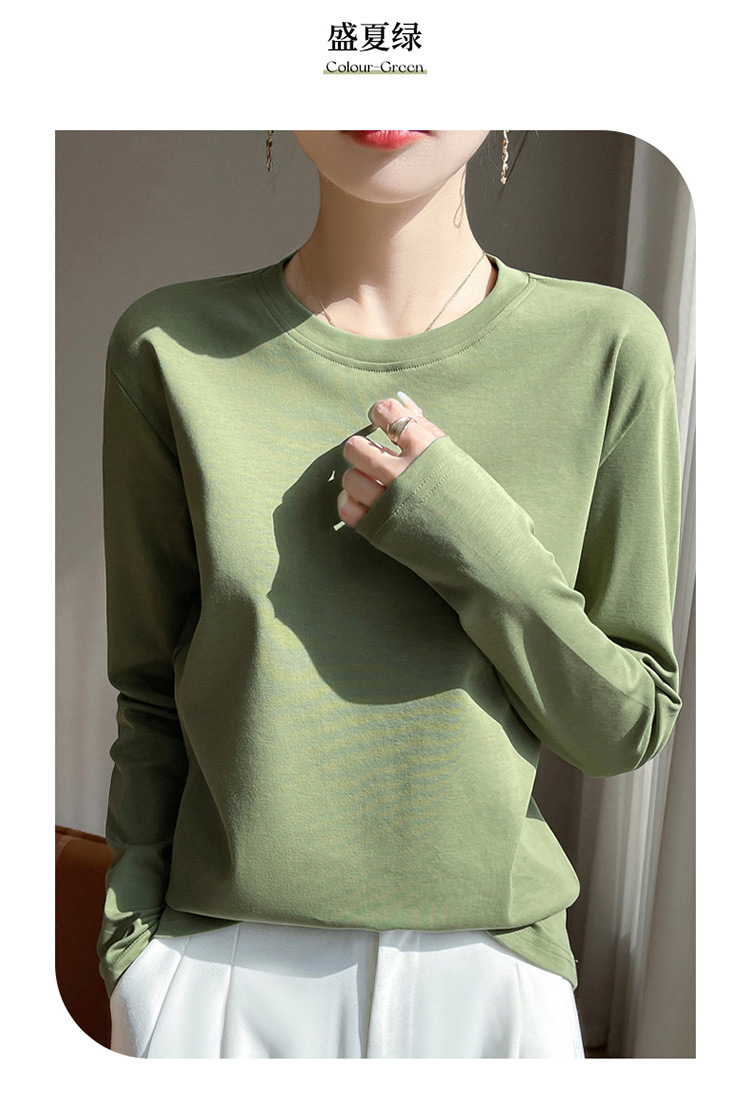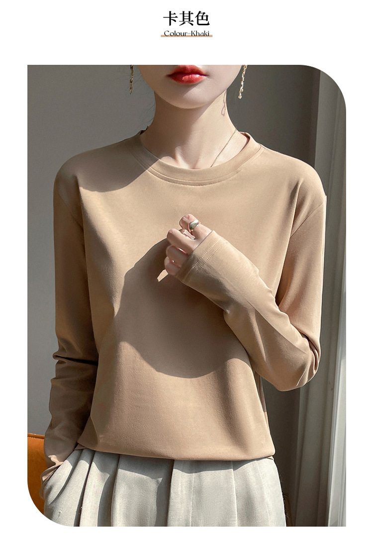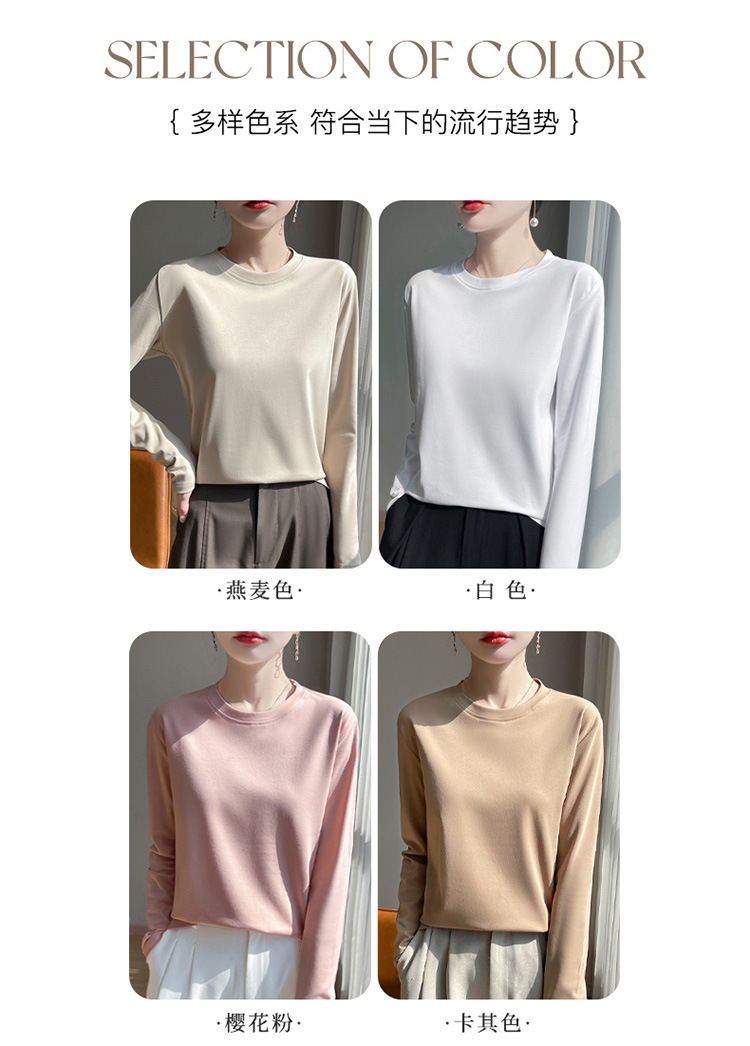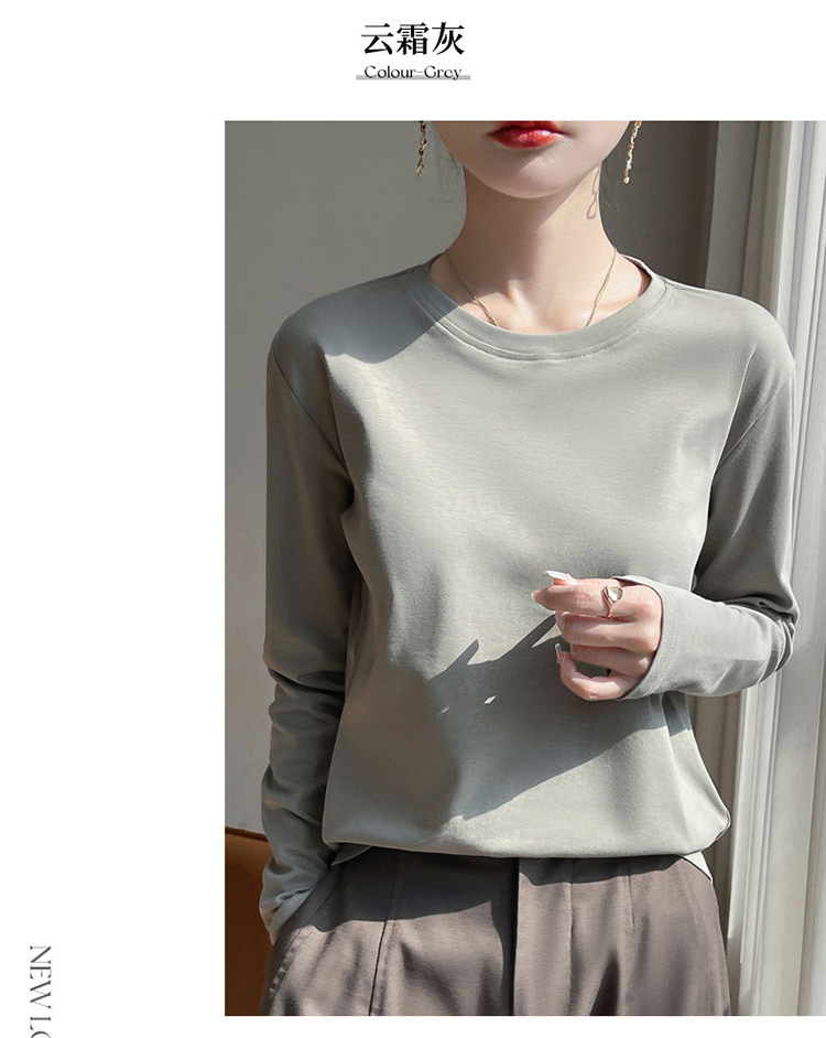 ラウンドネックアイスコールドコットン長袖Tシャツ女性用2025春夏新スタイル多用途綿ボトムシャツトップ女性用