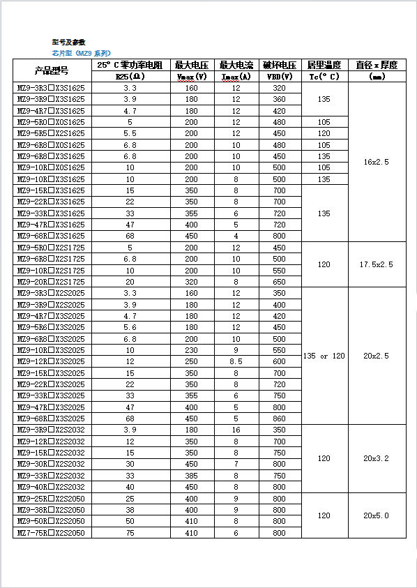 1.□代表R25的偏差范围M:±20% X:±25% N:±30% S:特殊