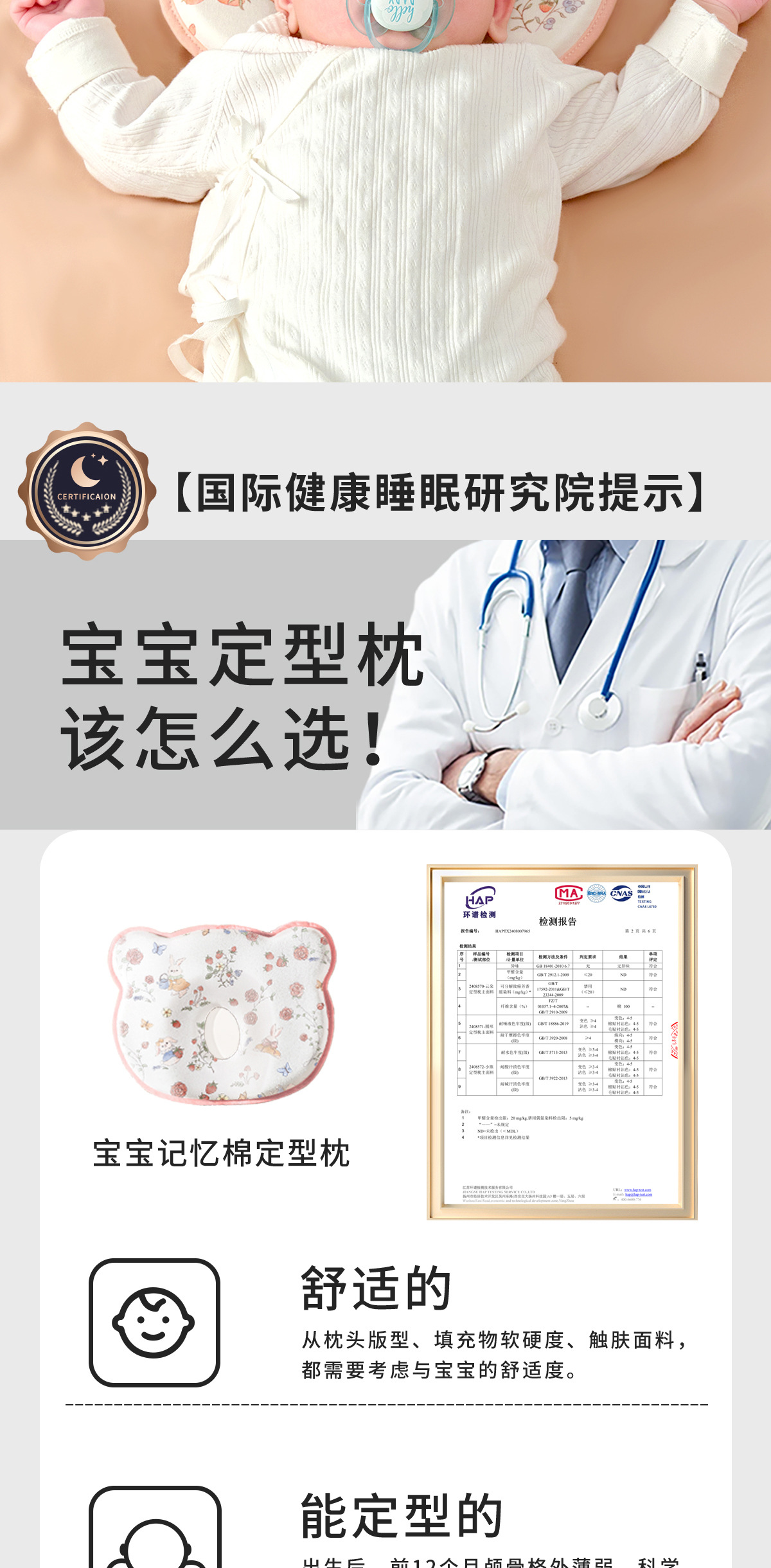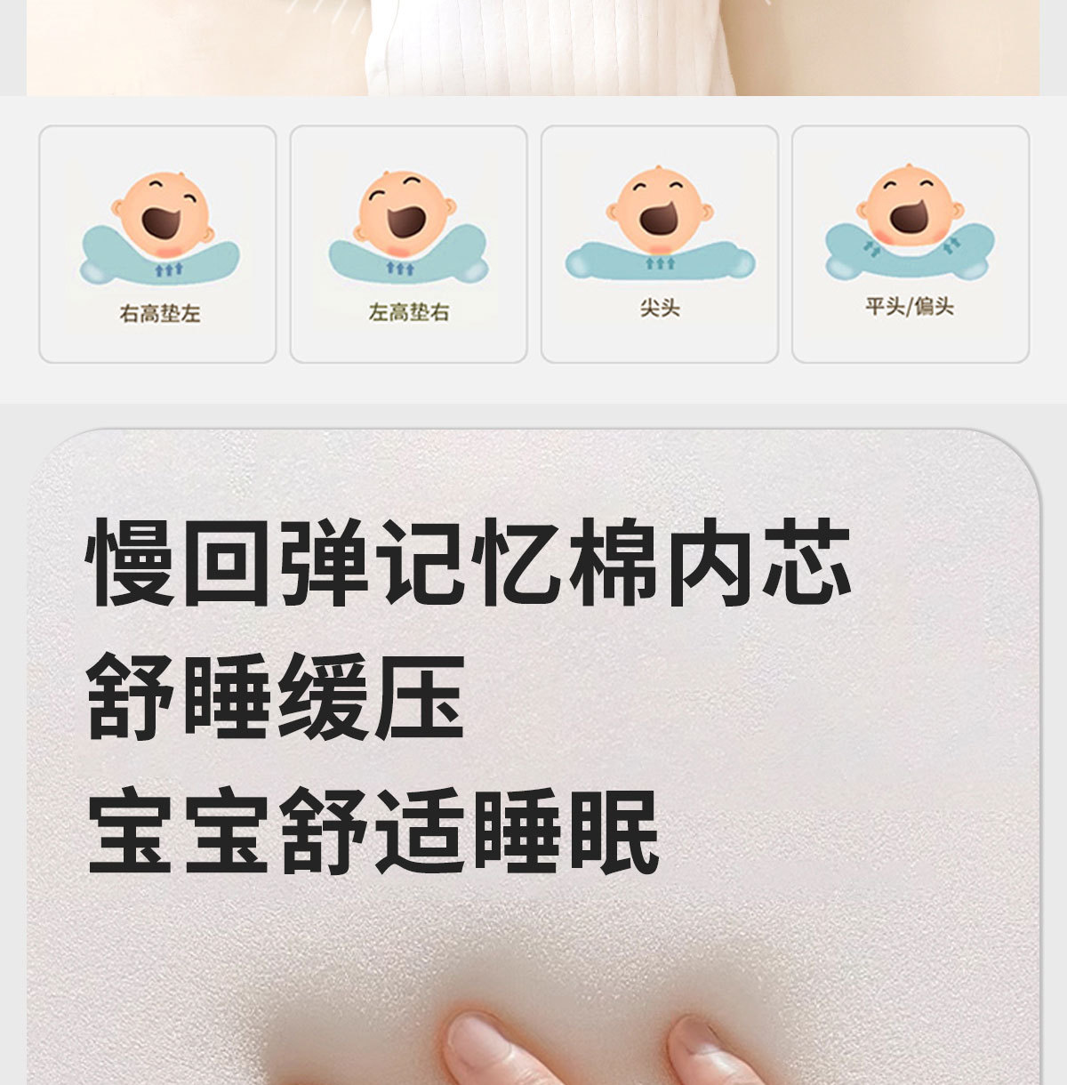 赤ちゃんの定型枕は水洗いできます。記憶綿枕は0-1歳で、新生児の定型枕を補助します。