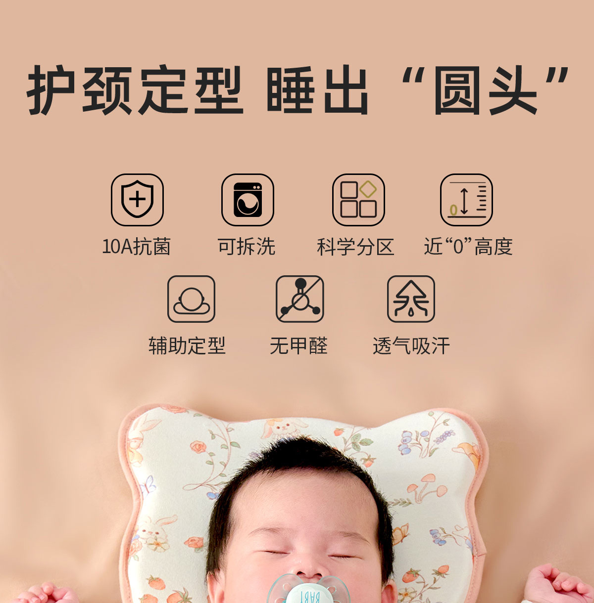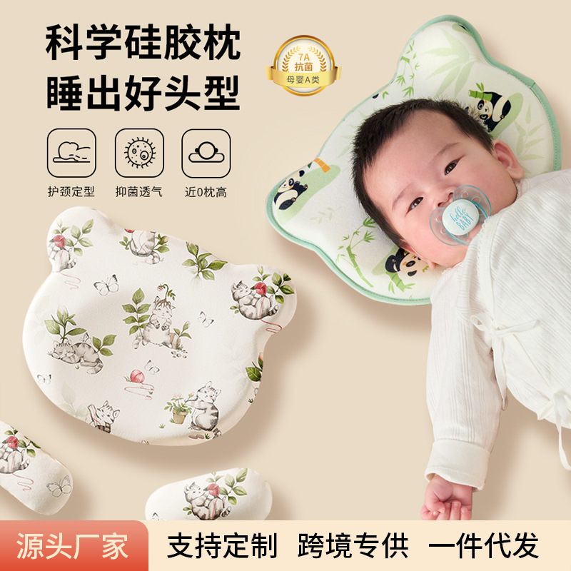 赤ちゃんの定型枕0-1歳の水洗い可能なシリコン枕補助丸頭神器新生児赤ちゃんの定型枕