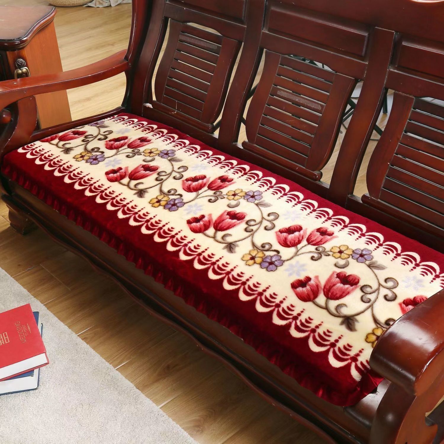 新中式沙发坐垫加厚款沙发坐垫冬季毛绒加厚防滑实木沙发坐垫直发