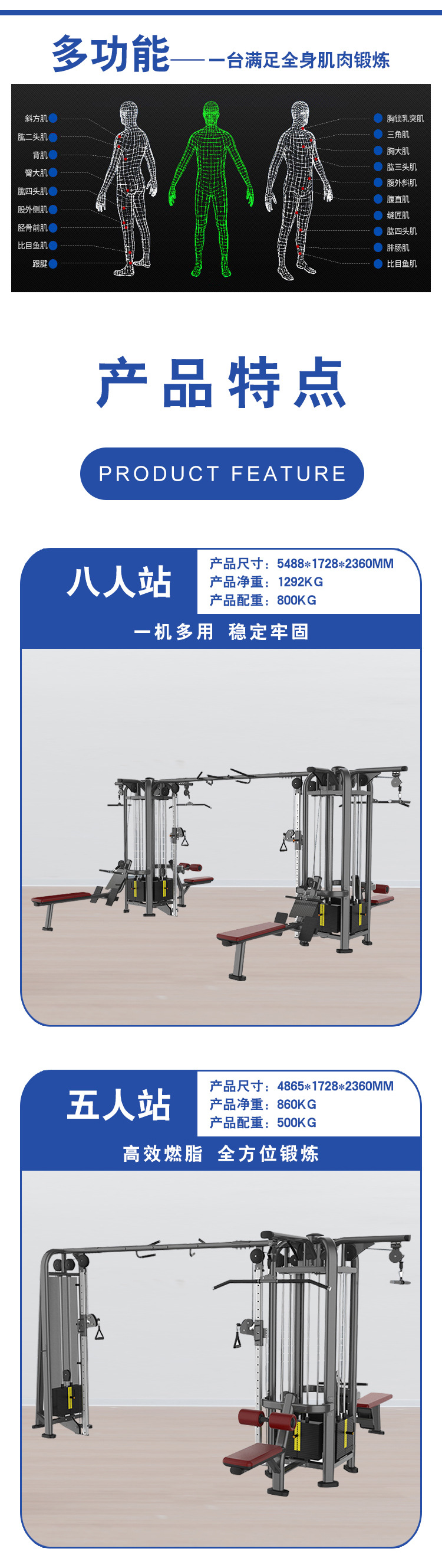 複数人用多機能総合筋力トレーナー、複数人用トレーニングデバイス、ジム用業務用筋力器具工場