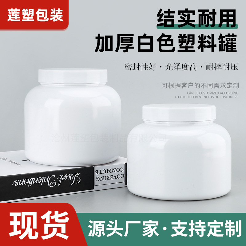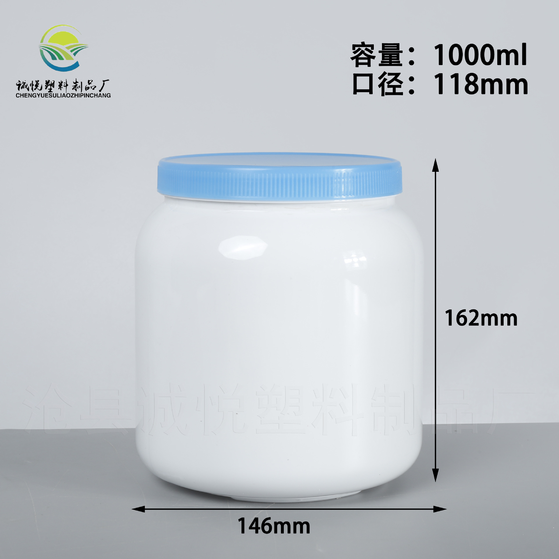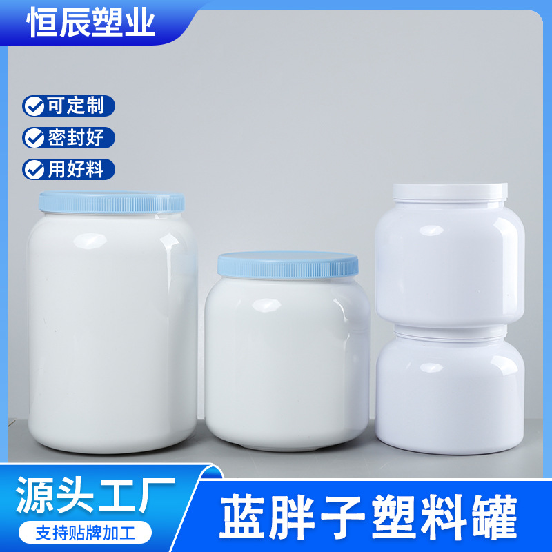 1000g蓝胖子粉剂桶pet大容量白色避光粉剂罐300g食品粉剂桶