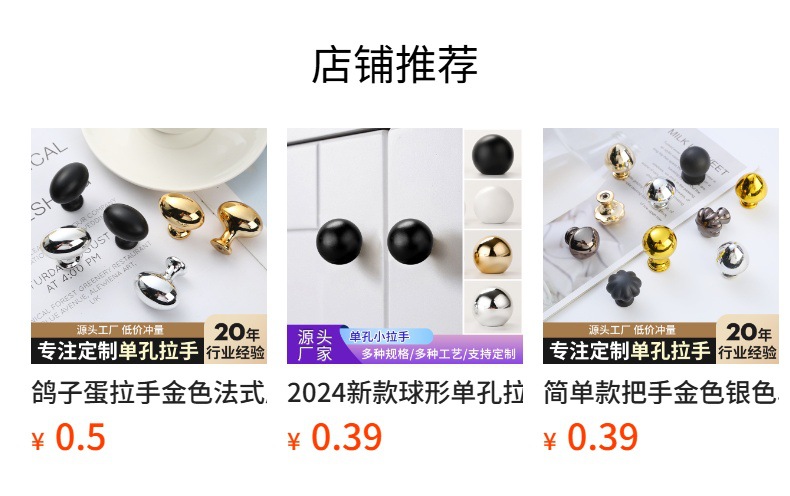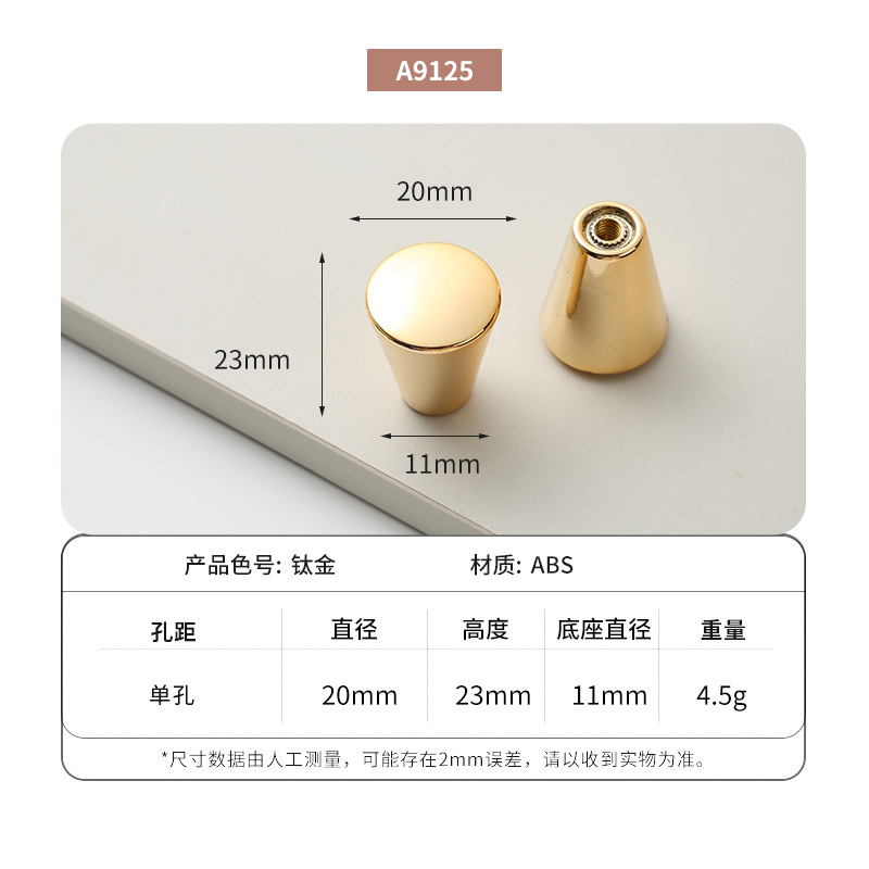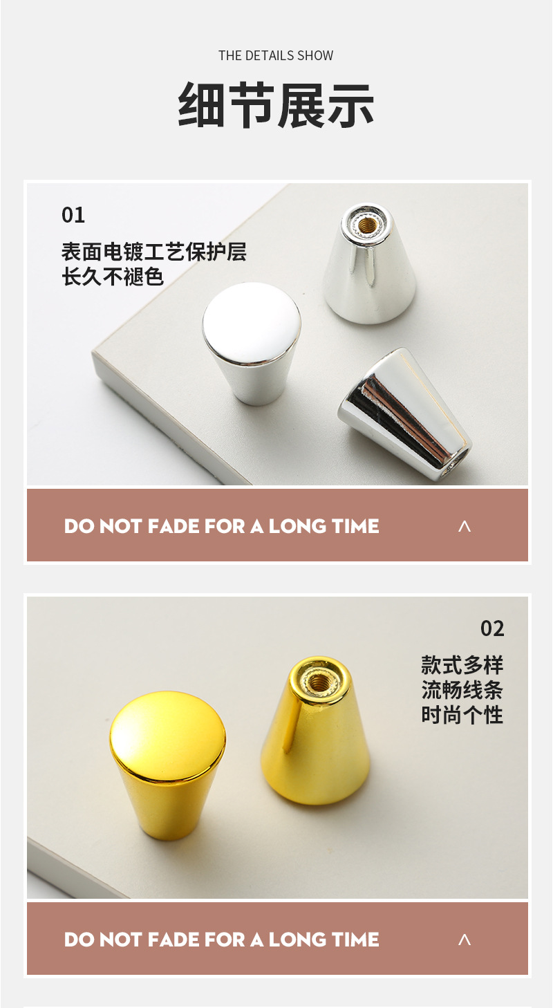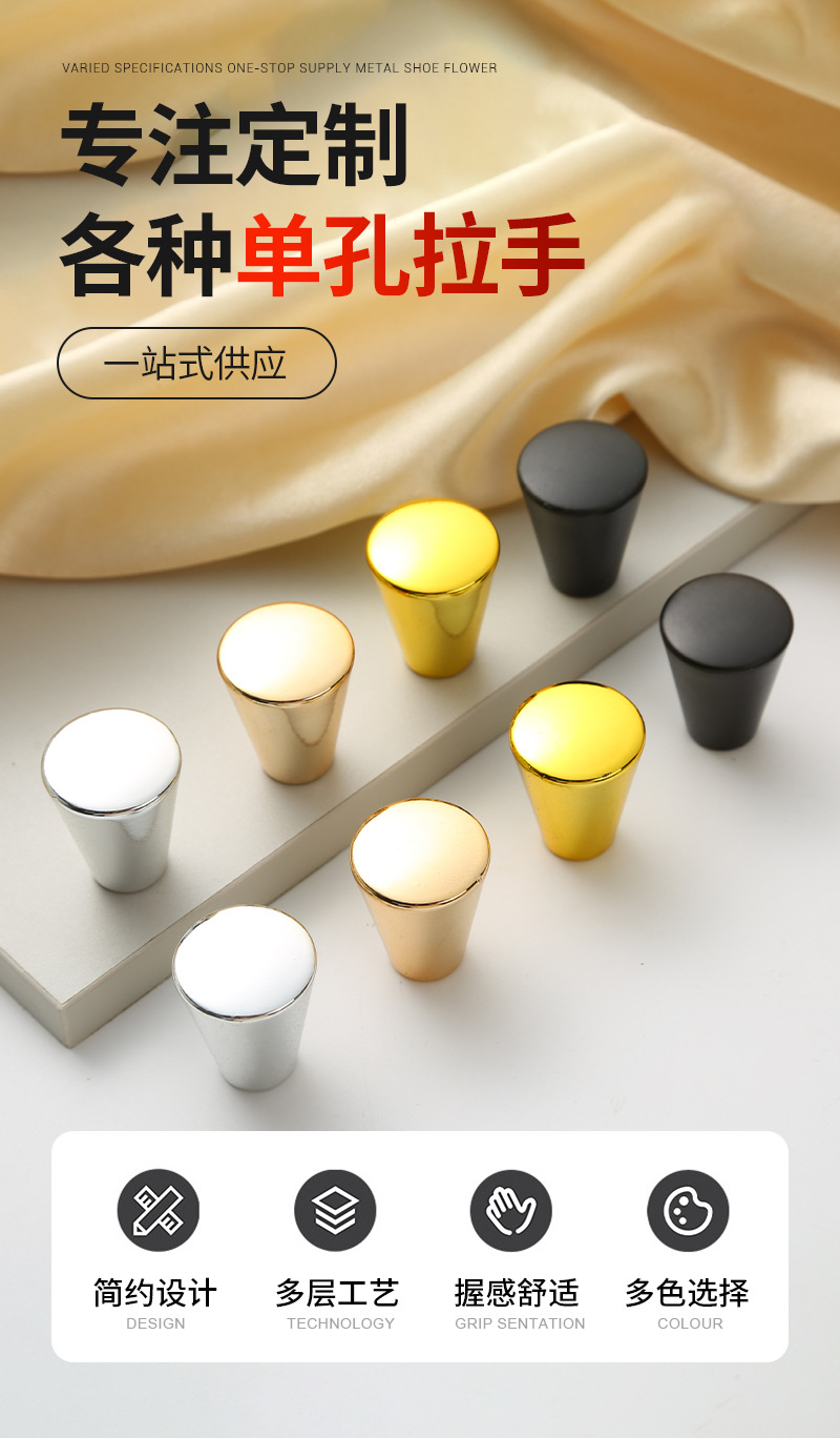 现代简约抽屉衣柜门床头柜锥形小拉手铝合金金色把手明装单孔顶珠