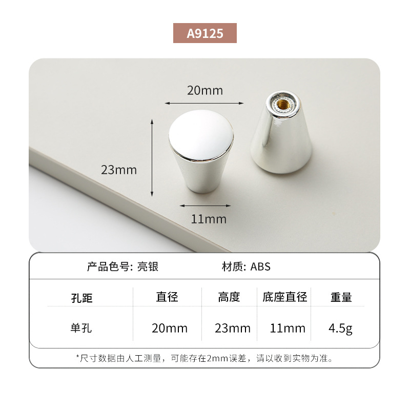 新中国式の軽い豪華なボールの取っ手のプラスチックの銀色のクリームの風の単孔の取っ手の引き出しのタンスの扉の小さい取っ手