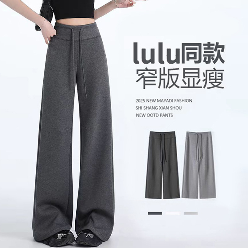 アメリカンレトロなゆったりスタイルのカジュアルレディースパンツ、スポーツ用ドローストリング付きスウェットパンツ、上品なハイウエストで着痩せ効果のあるゆったりとしたドレープ感のあるワイドパンツ