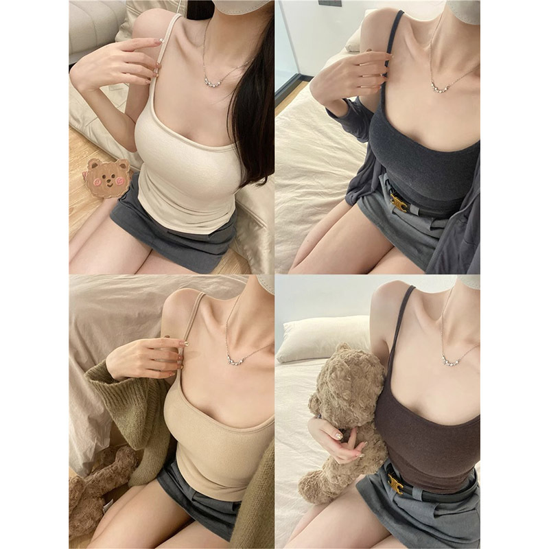 秋冬漫画胸小显大磨毛吊带背心带胸垫薄厚可选内搭打底免穿文胸女