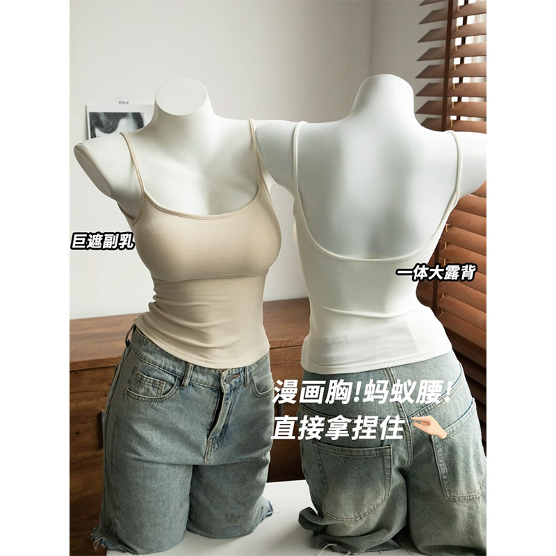 コミック貧乳・巨乳キャミソール・女性用ボトムス・美背中・胸パッド付き・ホットガール・アウタートップ・夏