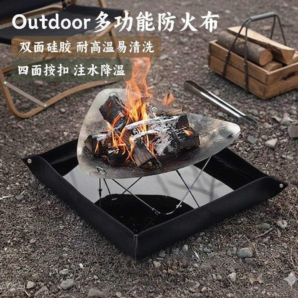户外露营帐篷柴火炉防火阻燃垫双面硅胶可注水耐高温易清洁防火布