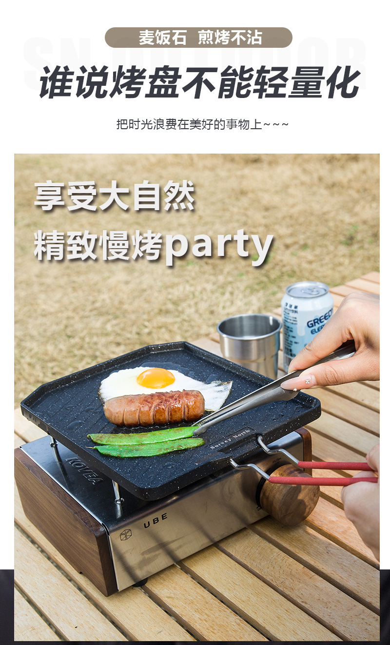 アウトドアキャンプキャンプバーベキューポータブル折りたたみ非粘着プレート変形しない家庭用清潔なミニ麦飯石焼き皿