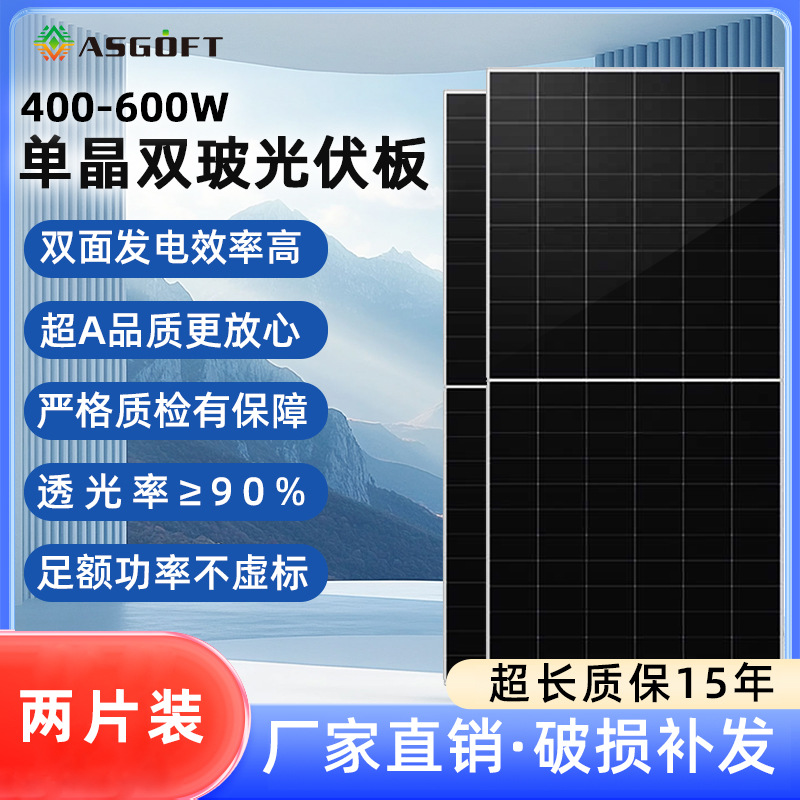 両面発電ダブルガラス単結晶太陽光パネル400W 500W 580W家庭貯蔵システムに電力を供給する
