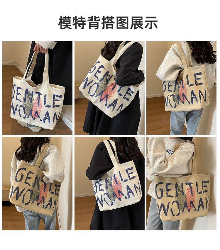キャンバスバッグ レディース 大容量 2025 新レター ニッチ布バッグ ショルダーバッグ テクスチャー クラス 通勤 トートバッグ