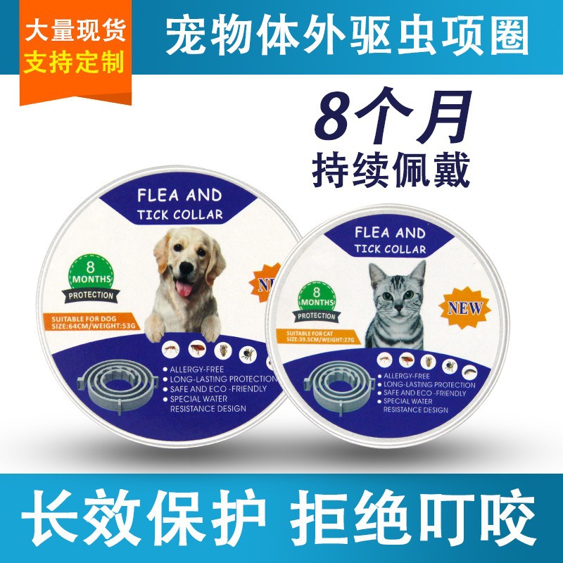 ペット用駆虫首輪、猫と犬のノミ取り、屋外用防蚊首輪、クロスボーダーラベル付きドロップシッピング