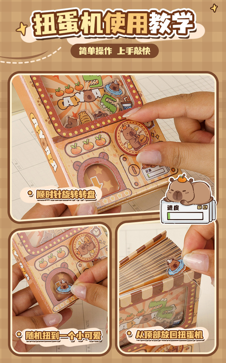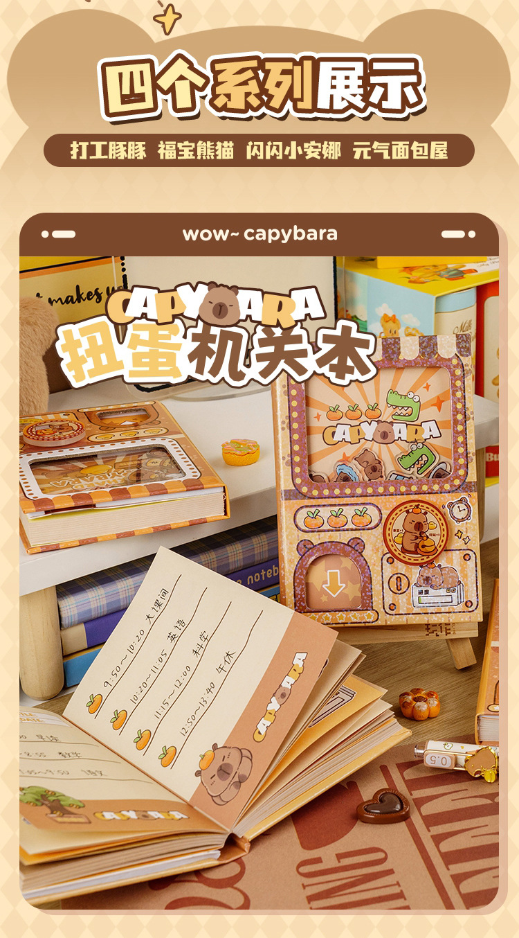 卡皮巴拉扭蛋机关本学生笔记本子加厚记事本可爱口袋本解压手账本
