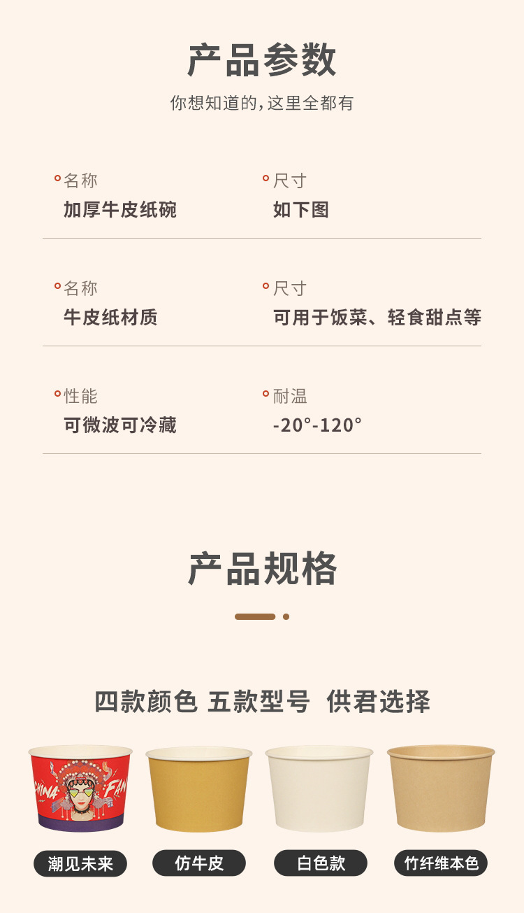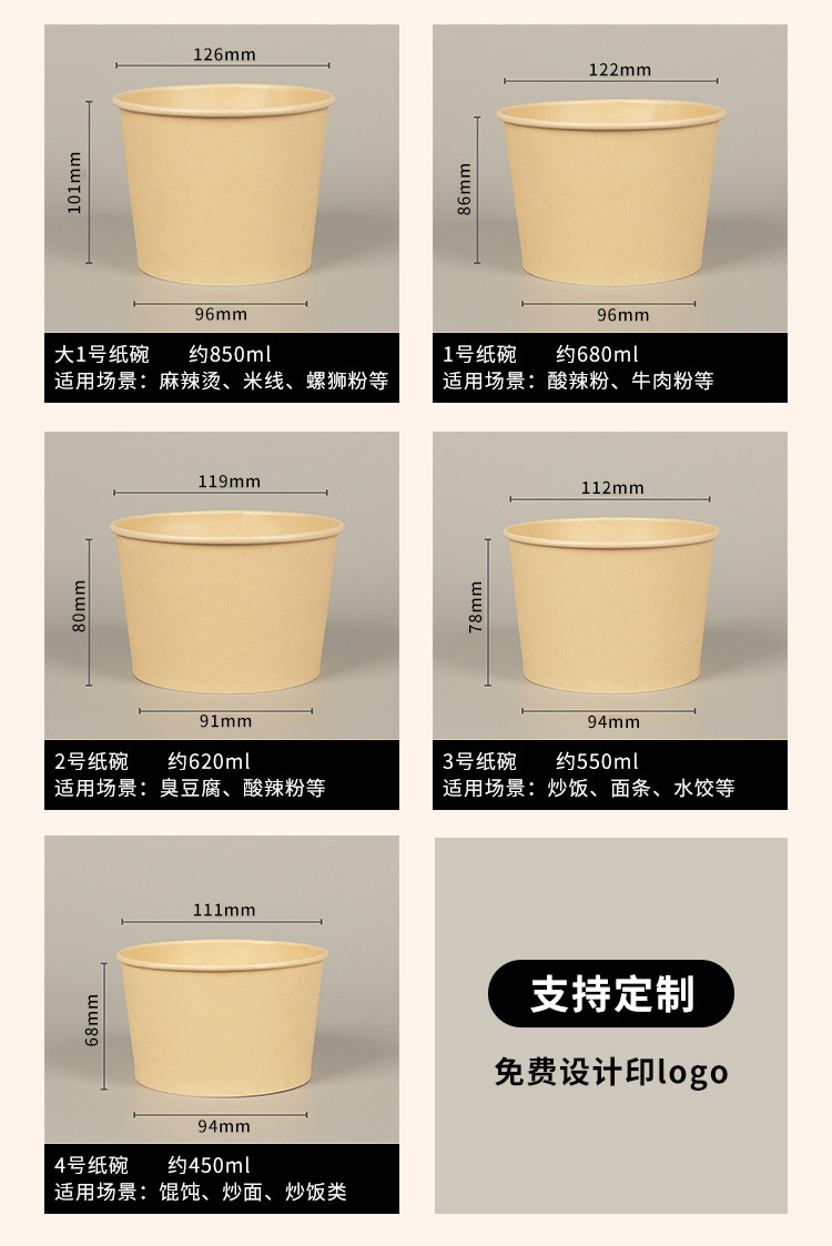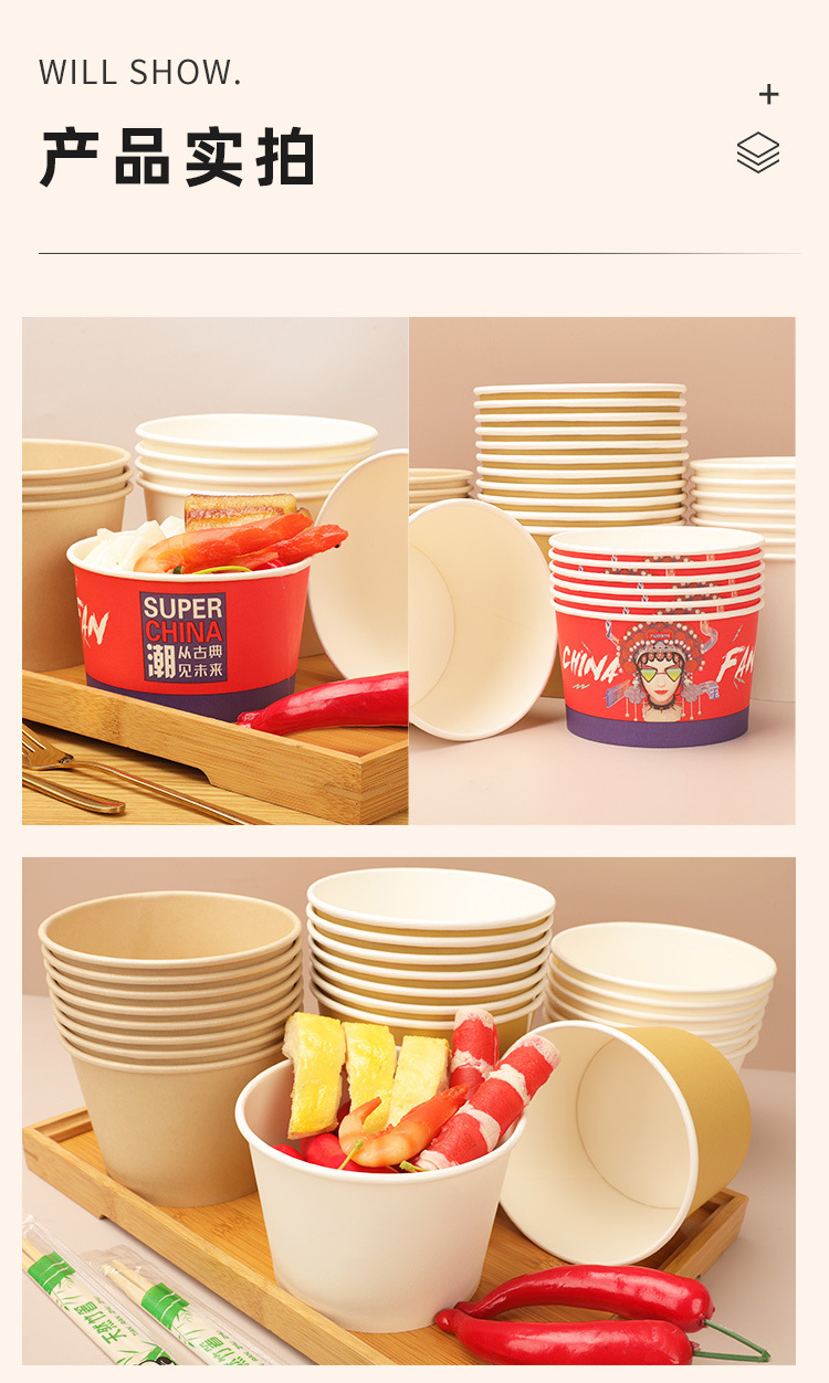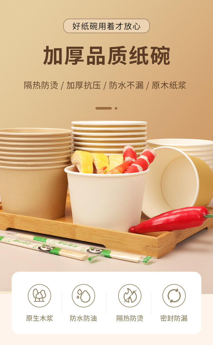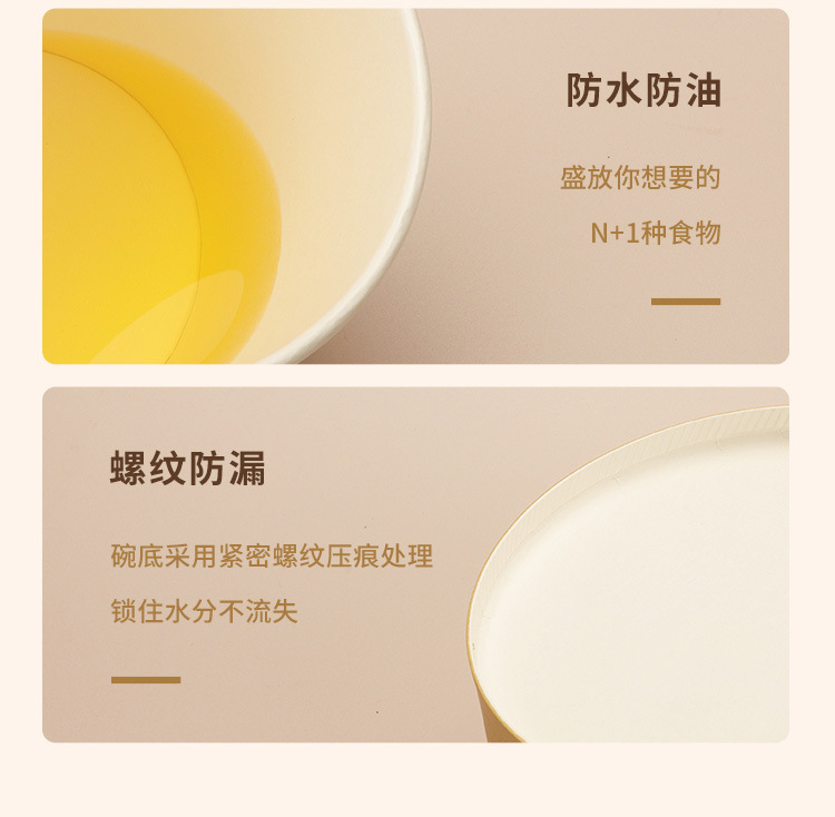 使い捨て天然紙ボウル弁当箱ラウンド包装弁当箱インスタントラーメントテイクアウト増粘環境に優しい竹繊維家庭用および商業用