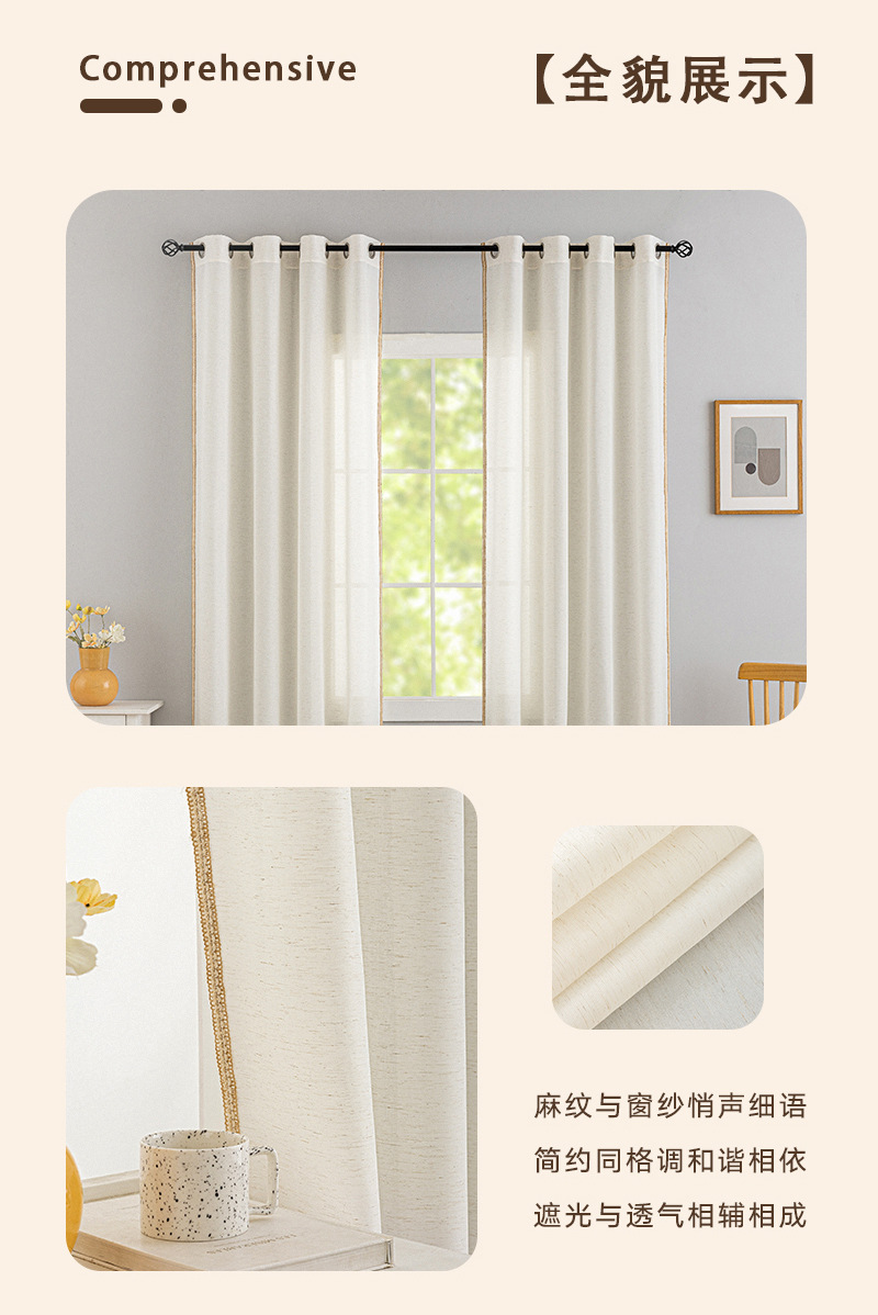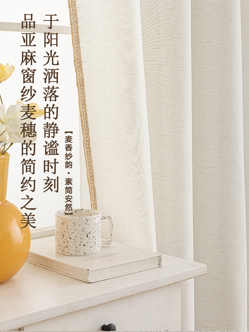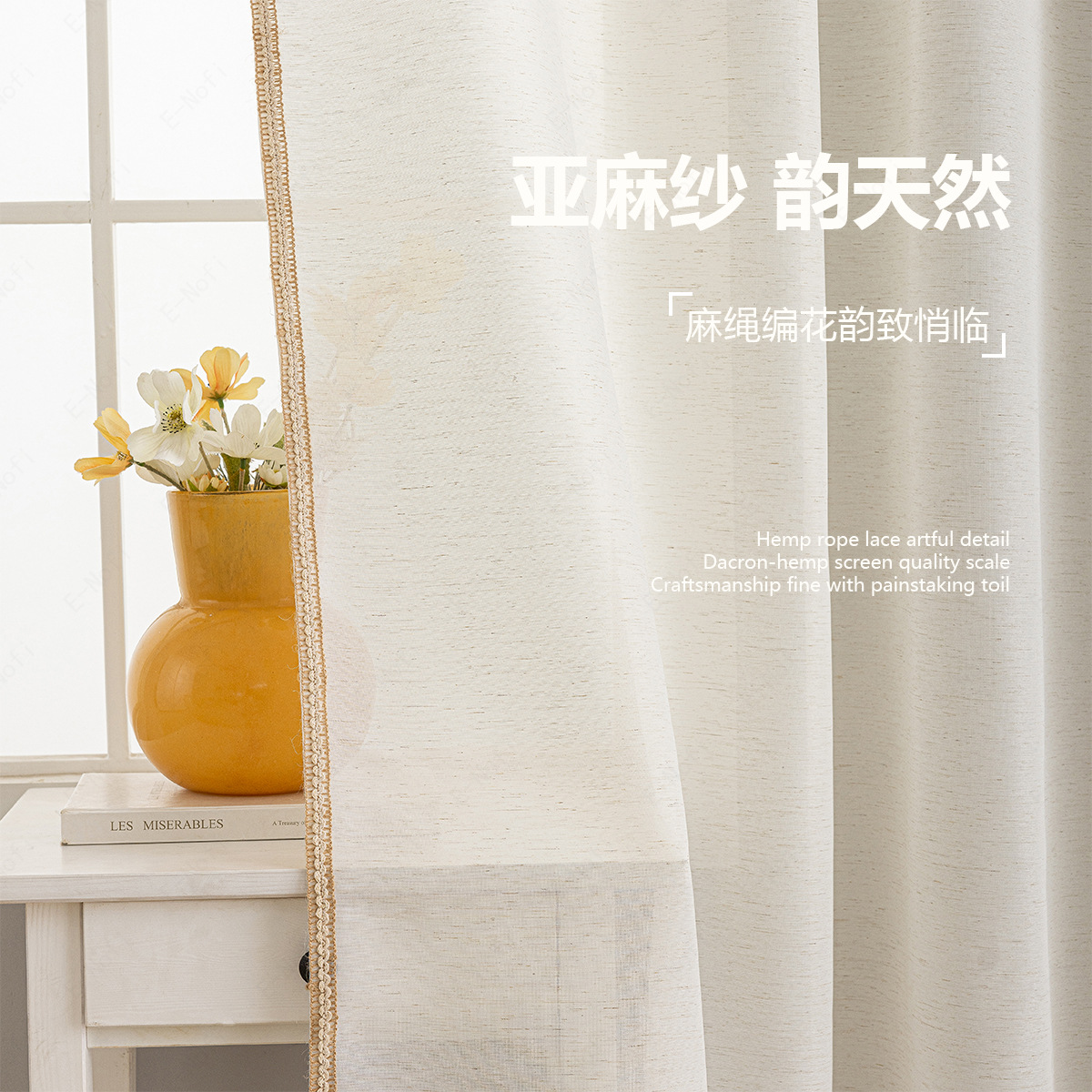 カーテン日本式亜麻現代シンプルなリビングルームの窓の糸が透き通っています。
