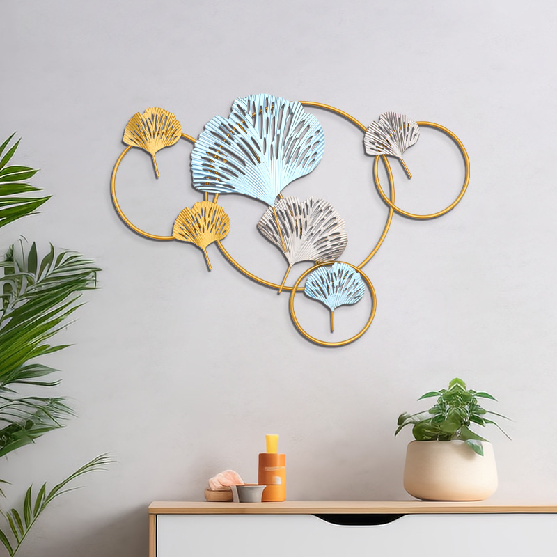 錬鉄製の壁装飾クロスボーダー北欧玄関壁掛けホームゴールデンリーフリビングルームソファ錬鉄製の装飾ペンダント