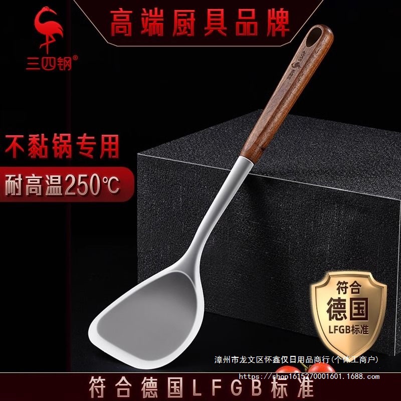 进口硅胶铲食品级耐高温不粘锅铲子勺子木柄把炒菜无