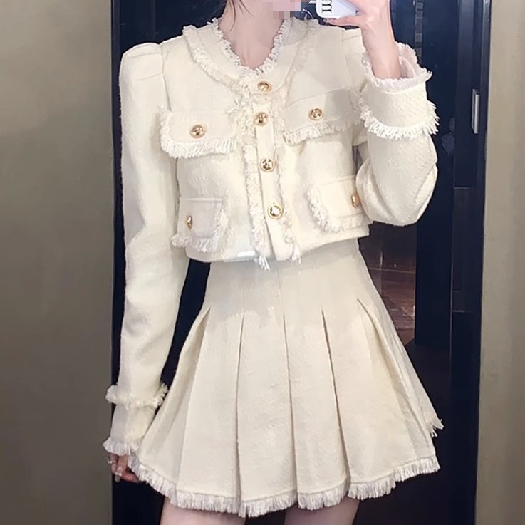 小香風スーツスカート2点セット秋冬新作フランス風気質名媛ショートコートスカート2点セット
